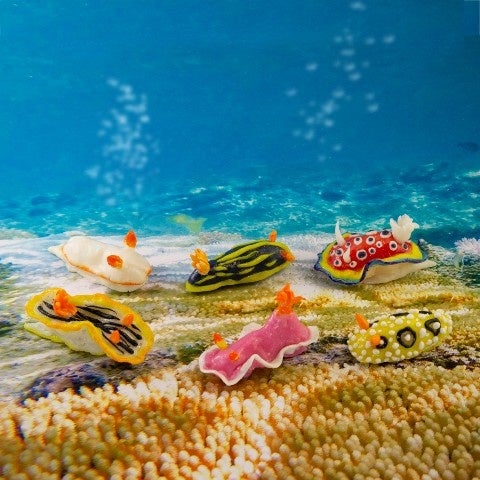 全6種(アオウミウシ/シンデレラウミウシ/シライトウミウシ/シロウサギウミウシ/キイロイボウミウシ/オトヒメウミウシ)展開