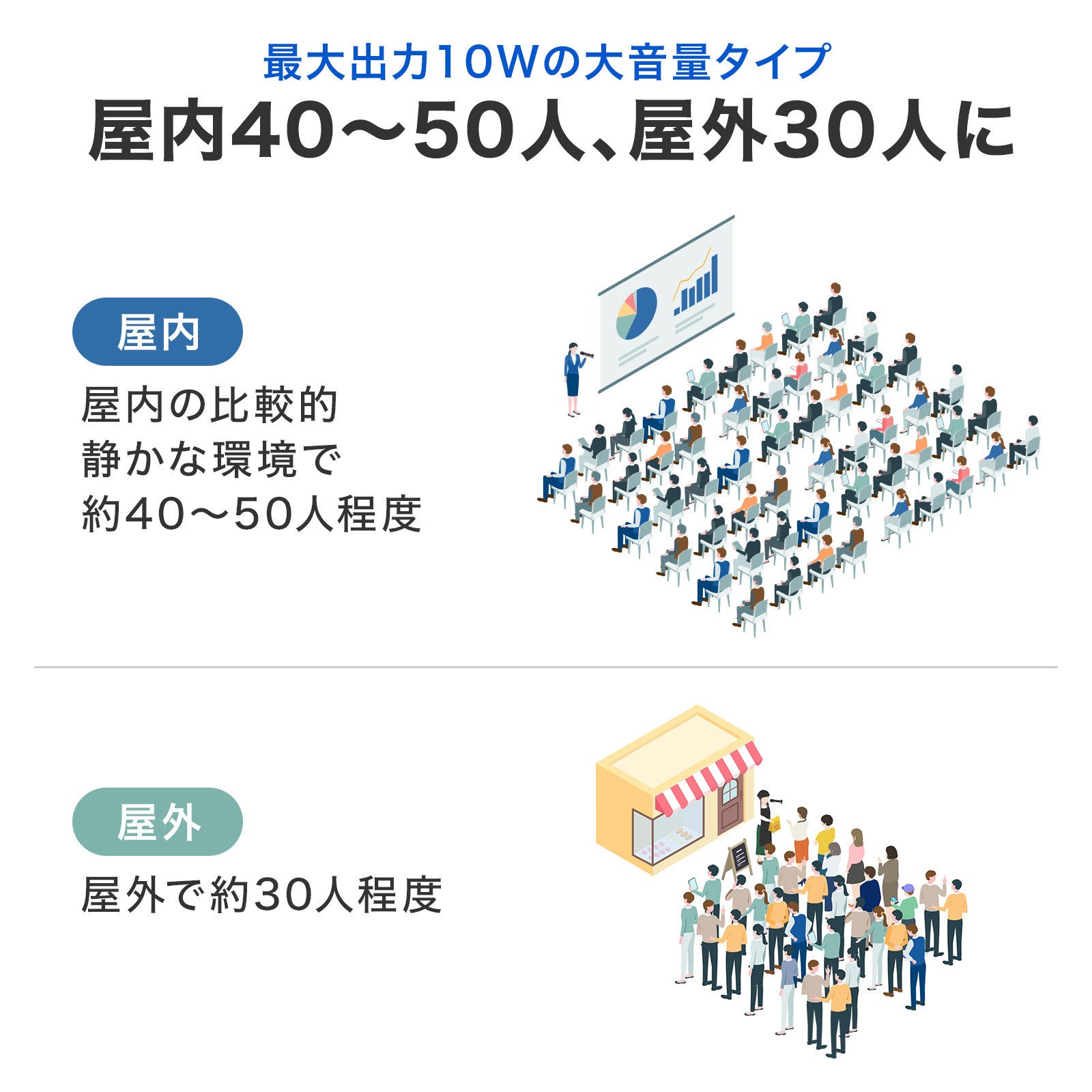 屋内の比較的静かな環境では約40~50人程度、屋外では約30人程度で使えます。