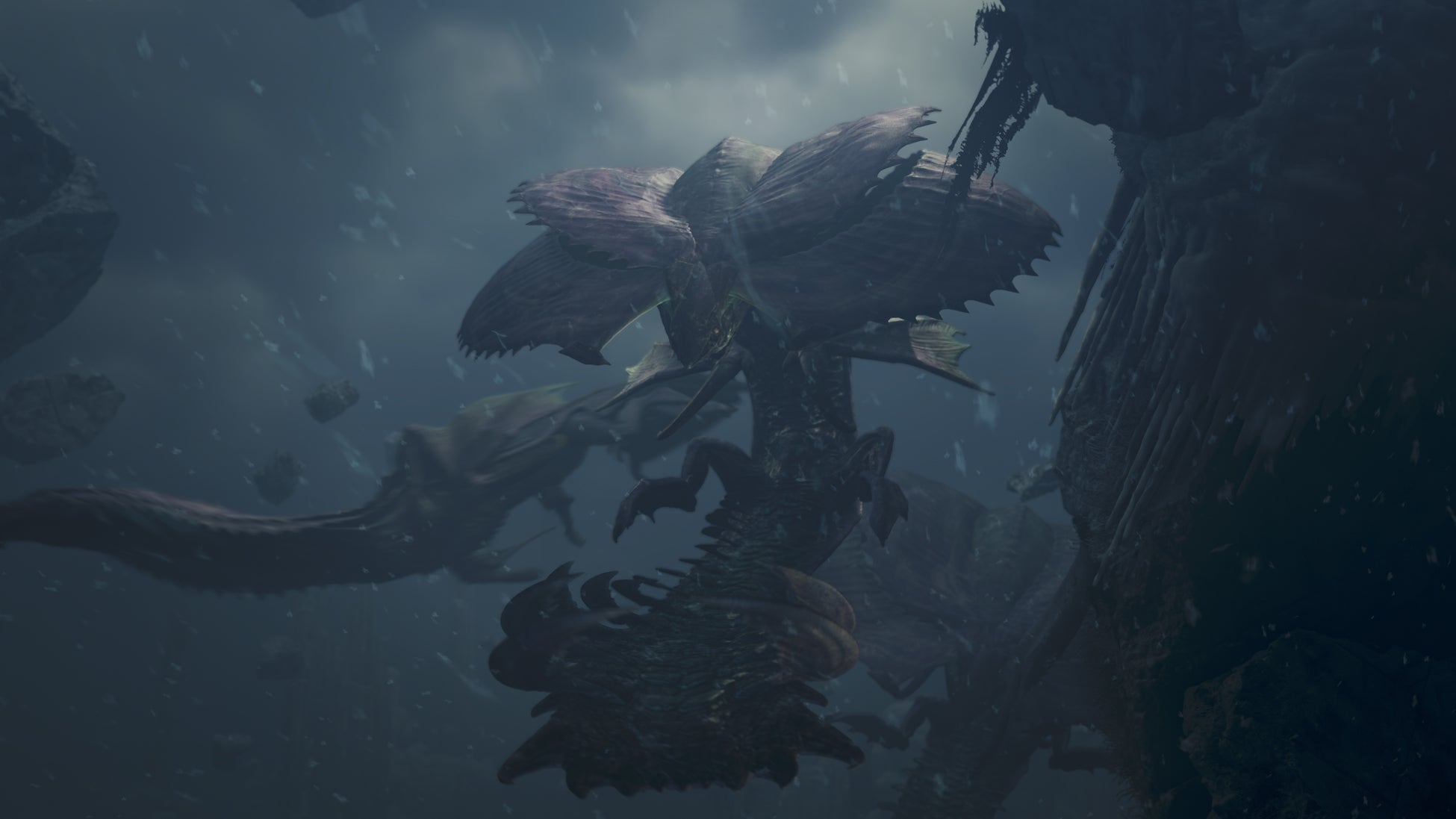 氷霧の断崖に生息する海竜種。尻尾に生えた鋭利で大きな尾爪と、首にある特殊な膜に風を受けて浮遊飛行するその姿から「風鋏竜(ふうきょうりゅう)」とも呼ばれる。