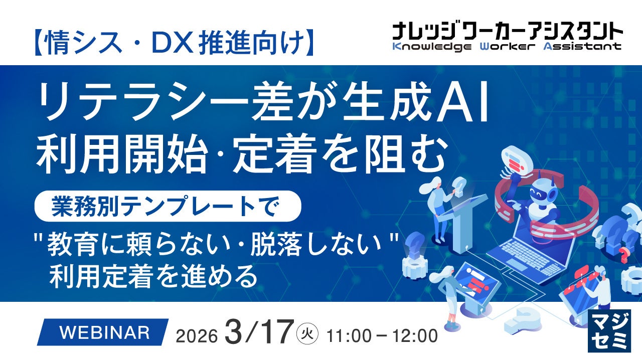 マジセミ株式会社は「【情シス・DX推進向け】リテラシー差が生成AI利用開始・定着を阻む 」というテーマのウェビナーを開催します。