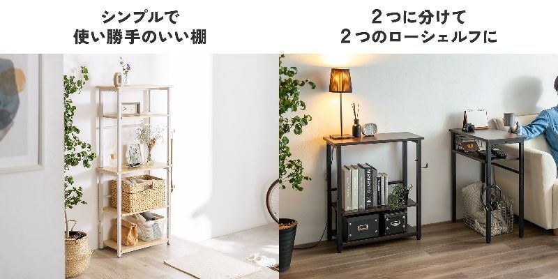 1つのシンプルなシェルフとして使うことができます。分割して2つのシェルフとして使うことも可能です。