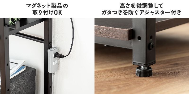 フレームにはマグネット製品の取り付けが可能です。がたつきを防ぐアジャスター仕様です。