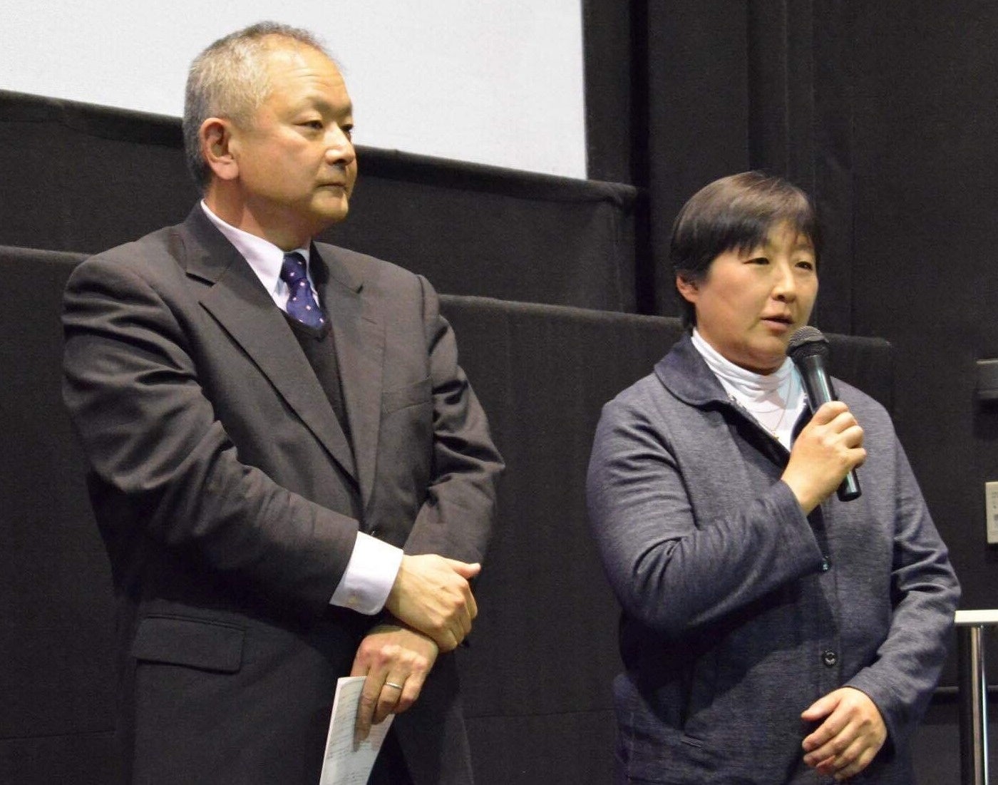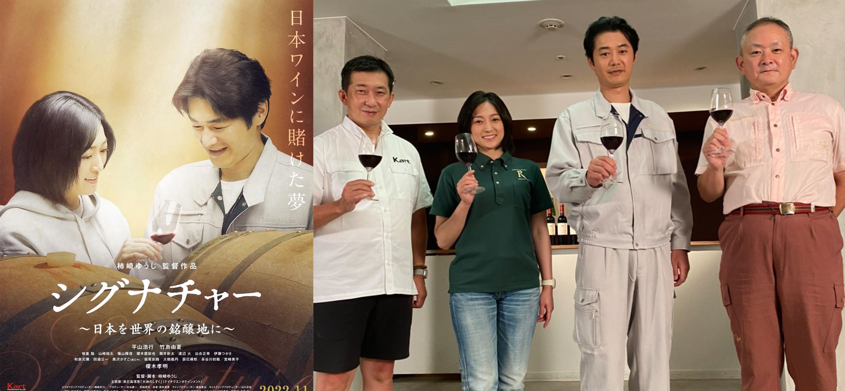 監督は、同じく日本ワインをテーマにした「ウスケボーイズ」を手がけた柿崎ゆうじ監督。(上の写真は右から安蔵光弘、安蔵光弘役の平山浩行さん、安蔵正子役の竹島由夏さん、柿崎ゆうじ監督)