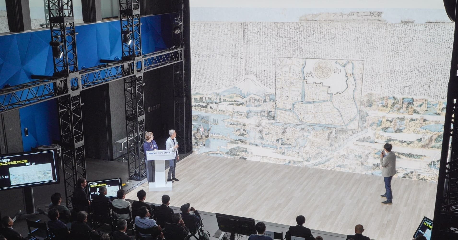 GMOインターネットグループのGMOグローバルスタジオ株式会社(代表取締役社長:橋口 誠 以下、GMOグローバルスタジオ)は、一般財団法人NHK財団と共催で2025年5月23日(金)、デジタルアートと最新技術を融合したイベント『ジャイアントスクリーンが誘う超没入体験! デジタルアートで蘇る日本の記憶』を開催いたしました。