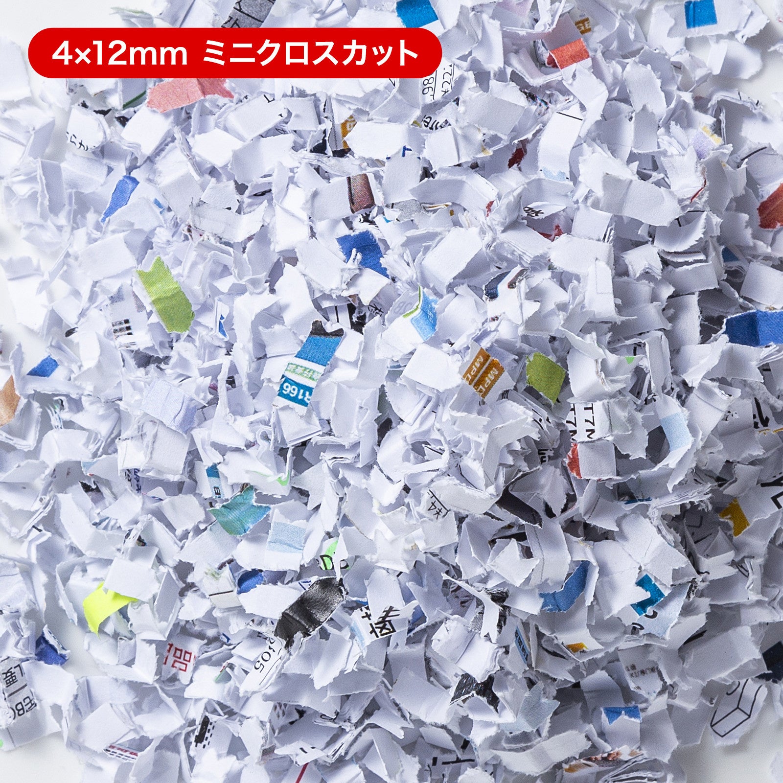 細断形状は4×12mmのミニクロスカットで、セキュリティ性の高い小さな紙片にカットします。家庭やオフィスに最適です。