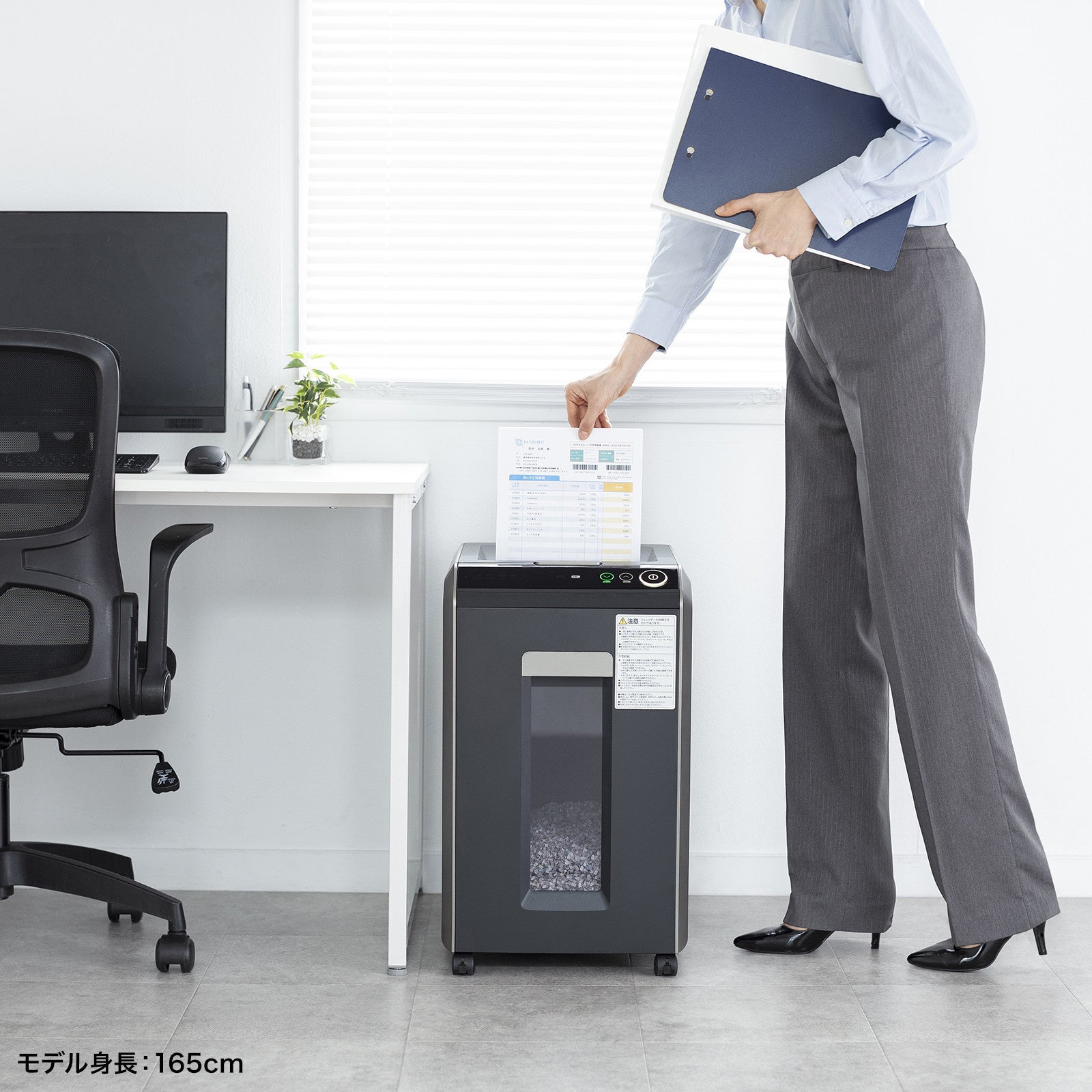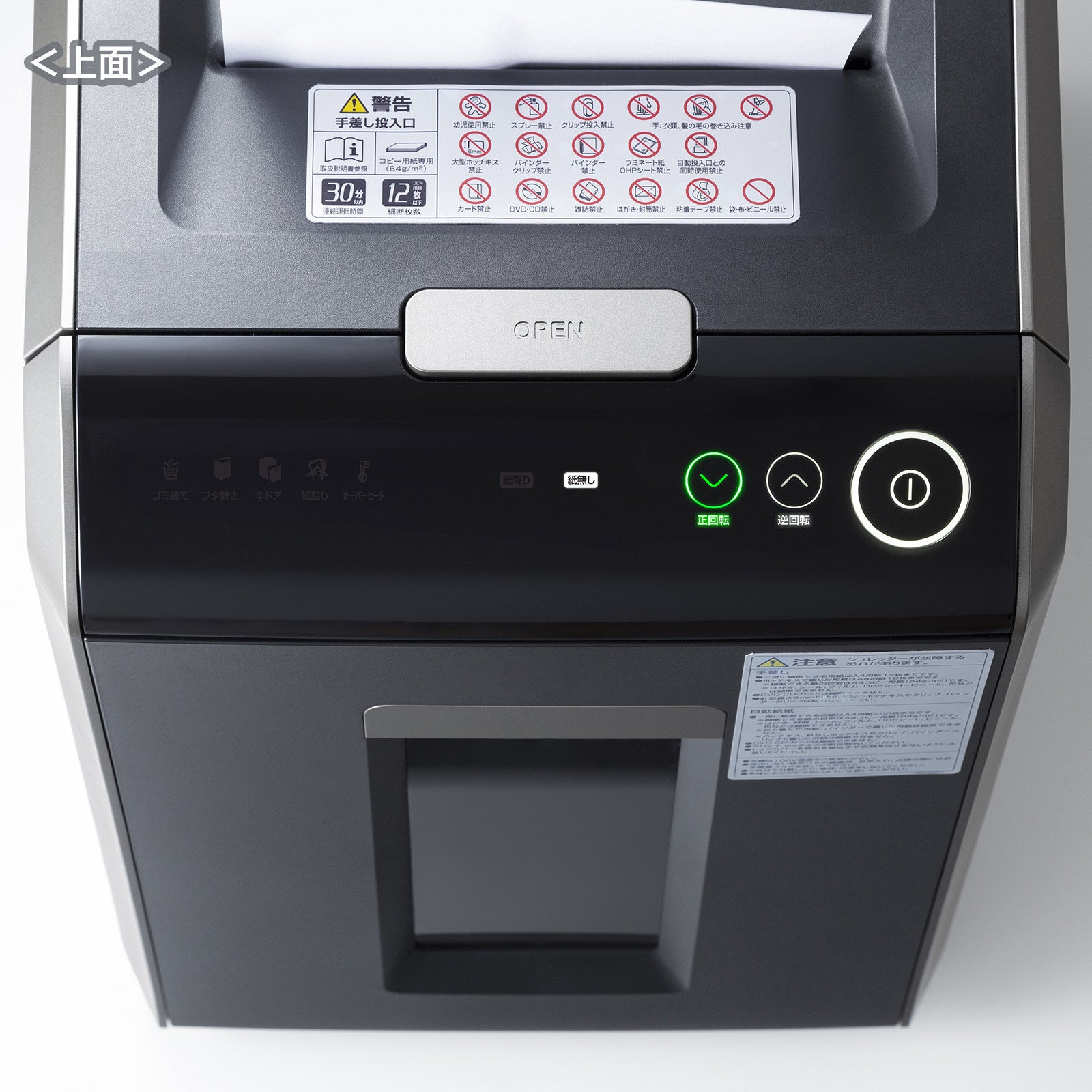投入口に紙が投入されると自動的に細断します。終了すると自動的に停止します。