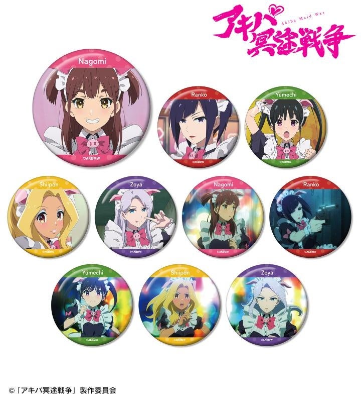 TVアニメ「アキバ冥途戦争」のトレーディング場面写缶バッジ、とんとことんアイコン カレッジTシャツの受注を開始!!アニメ・漫画のオリジナルグッズを販売する「AMNIBUS」にて