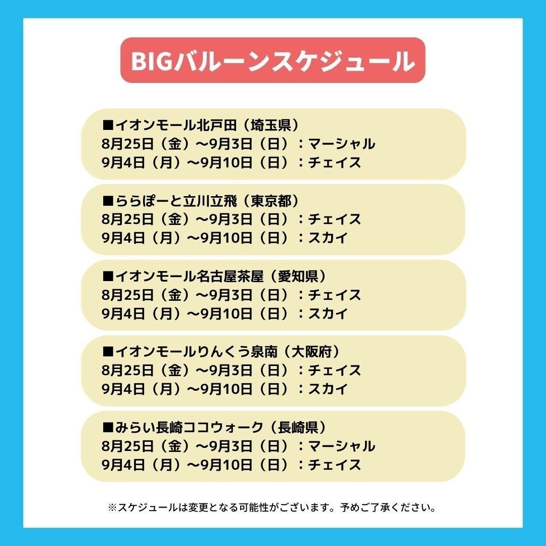 BIGバルーンはチェイスだけはなく、元気なダルメシアンのおとこのこ〈マーシャル〉と、おませでかしこいコッカースパニエルのミックスのおんなのこ〈スカイ〉も、引き続き展開いたします。