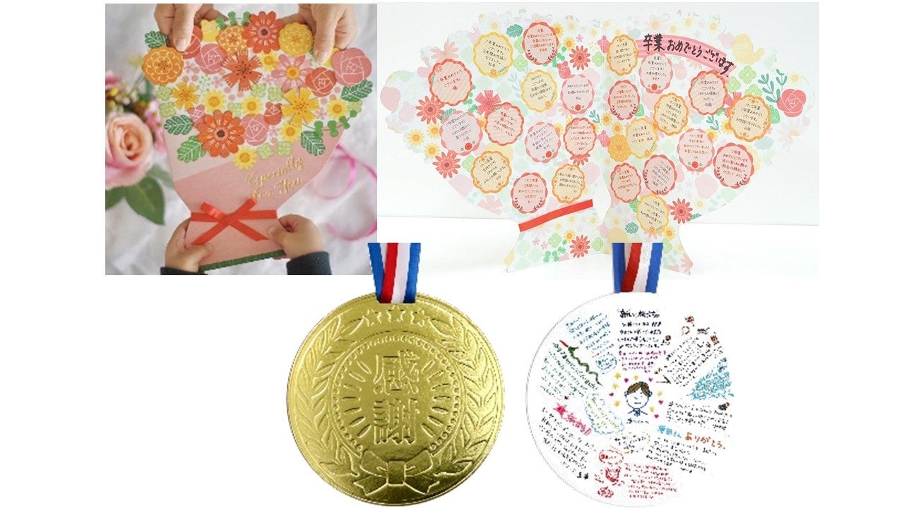 感謝やお祝いの気持ちを伝える色紙やデコレーションシールをご用意します。花束型、メダル型、トロフィー型など、贈る方も贈られる方も楽しい形を品揃えします。集めやすい寄せ書き用シールや楽しいデコレーションシールの関連商品も展開します。