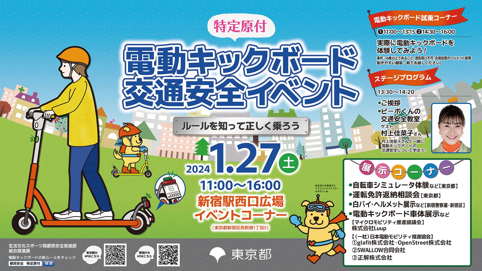 東京都は、警視庁や関係団体等と連携し、電動キックボードの安全利用啓発イベントを開催します。