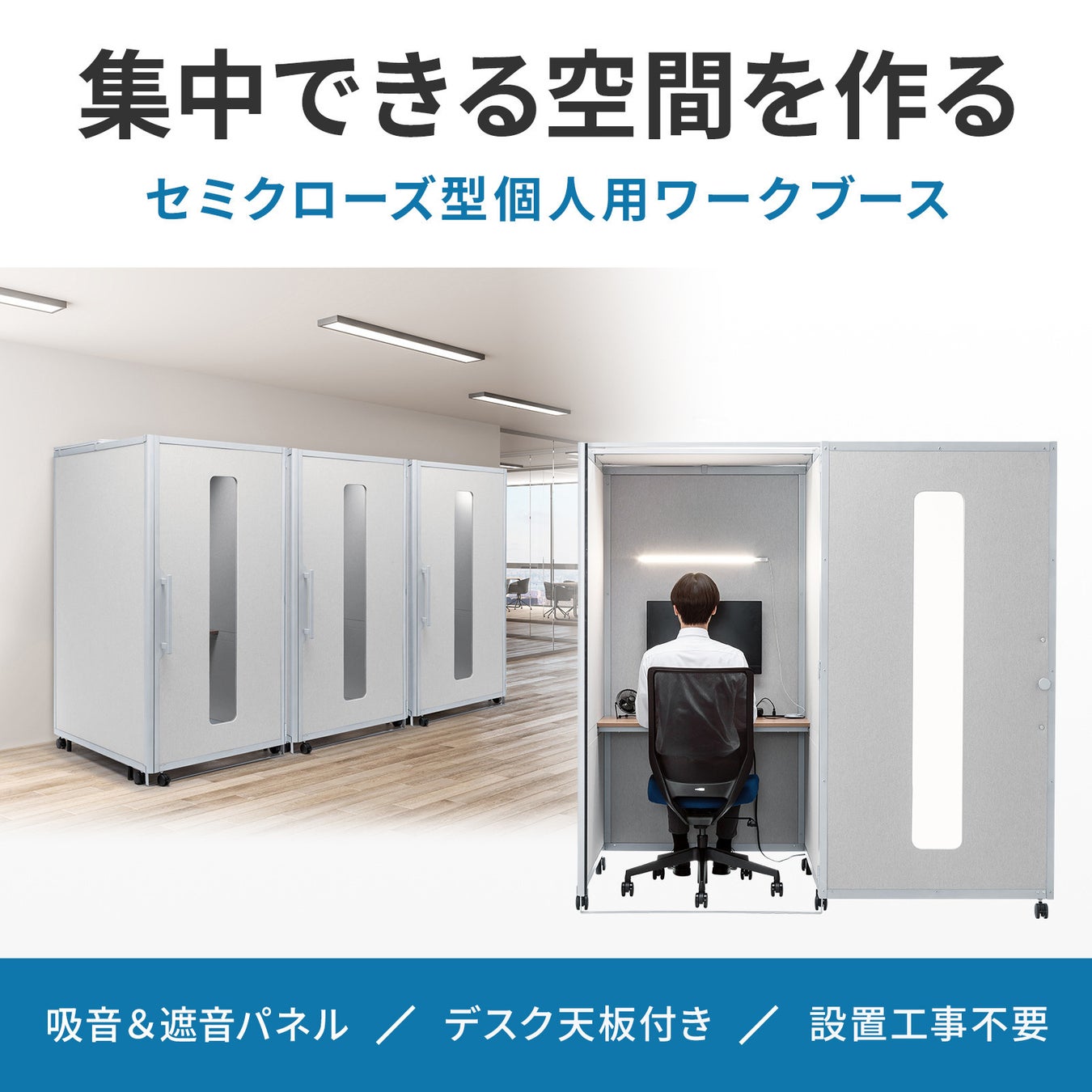 集中できる空間を作る、セミクローズ型個人用ワークブースを発売