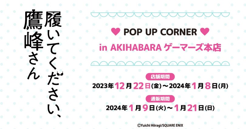 株式会社カードラボ ゲーマーズ(本社:東京都豊島区、https://www.gamers.co.jp/以下ゲーマーズ )は、2023年12月22日(金)より 8巻発売記念『履いてください、鷹峰さん』ポップアップコーナー を開催することをお知らせいたします。