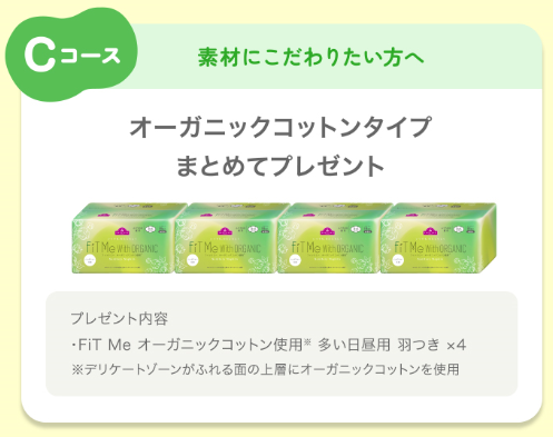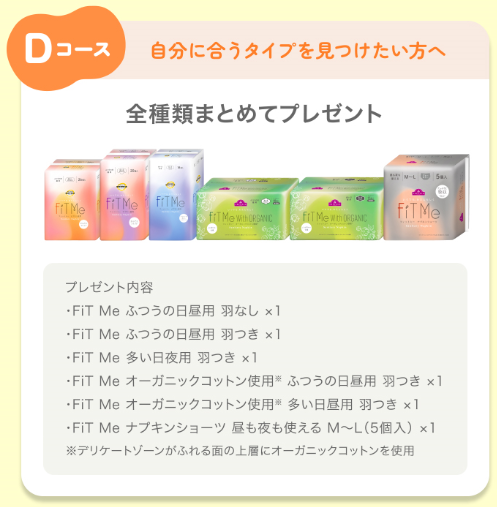 下記の4つのコースから選んでご応募いただくと、抽選で毎月30名様に「FiT Me」商品をプレゼントします。
