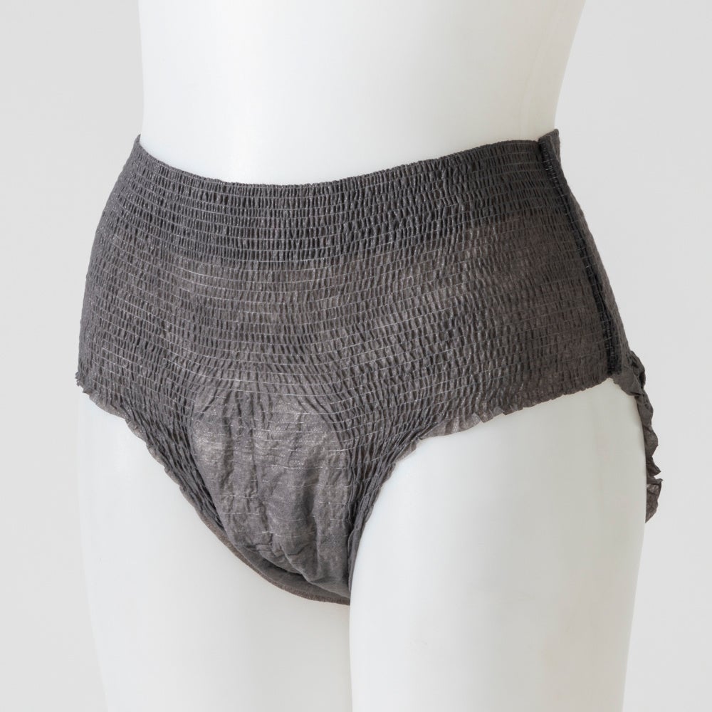 長時間トイレに行けないときやリラックスしたいとき、アクティブに活動したいときなどに昼夜を問わずご使用いただくことのできる、薄手でごわつきにくく衣服に響きにくい、使い捨てタイプのショーツ型ナプキンです。落ち着いたグレーカラーを採用しました。夜用ナプキン2枚分※4の吸収力で、安心感のある使い心地です。