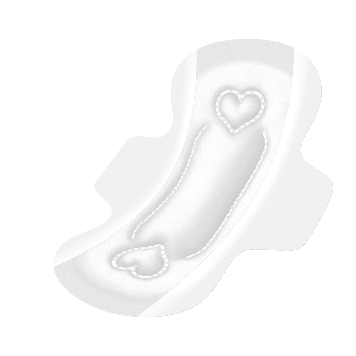 ふっくらと盛り上がった吸収体とハート形のエンボスが、体の丸みに沿ってフィットしながらヨレを防止します。経血をさっと落とし込んで広げずしっかり吸収します。