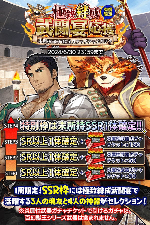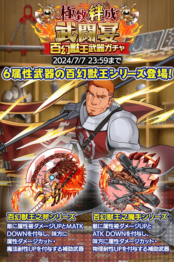 ※極致絆成武闘宴百幻獣王武器ガチャは6月24日(月)メンテナンス終了後~7月7日(日)23:59まで
