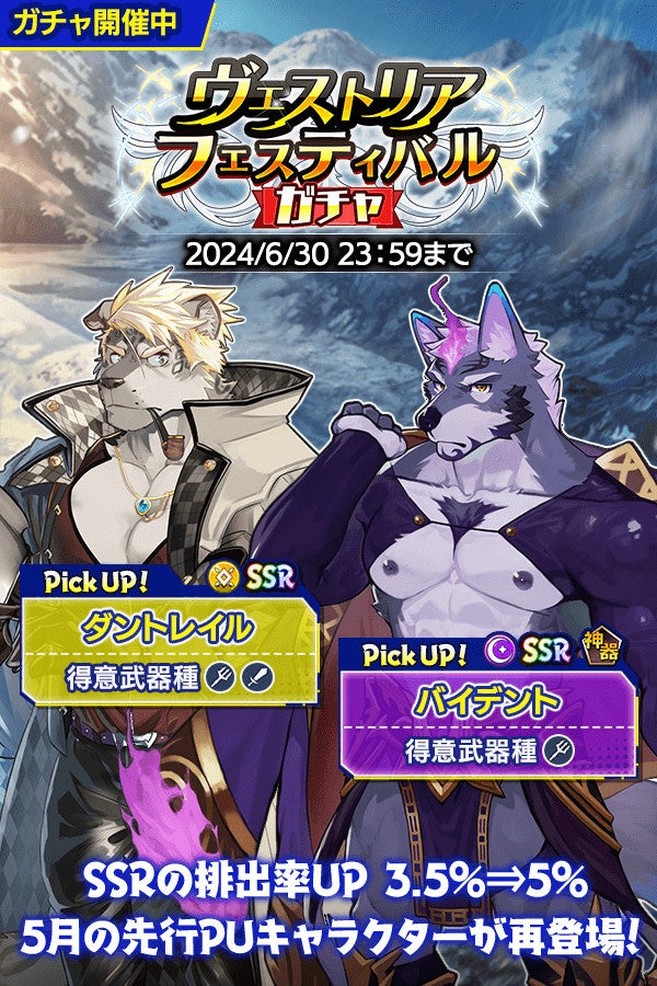 SSRの入手確率が大幅にUPした「ヴェストリアフェスガチャ」が開催!