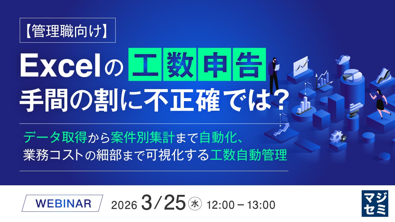マジセミ株式会社は「【管理職向け】Excelの工数申告、手間の割に不正確では?」というテーマのウェビナーを開催します。