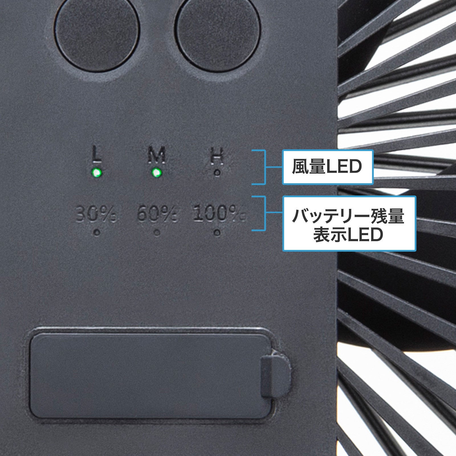 背面には風量・バッテリー残量が、確認できるLEDが付いています。