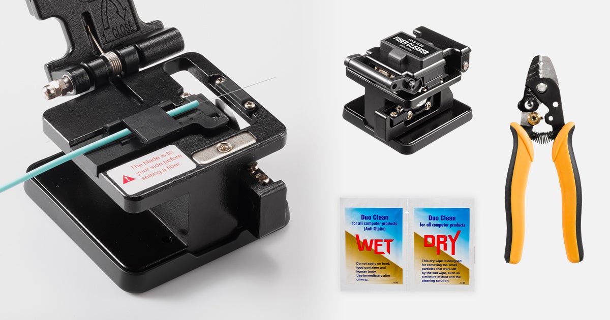 光ファイバケーブルの現場加工のための、クリーバー、外皮むき工具、クリーニングペーパーを発売