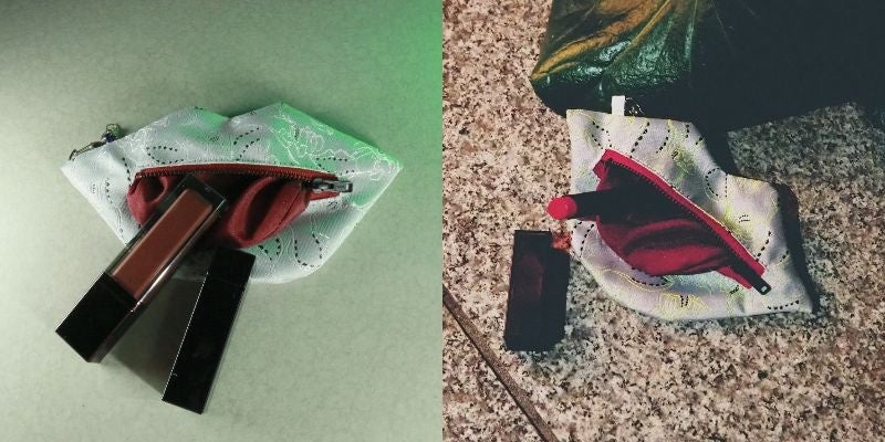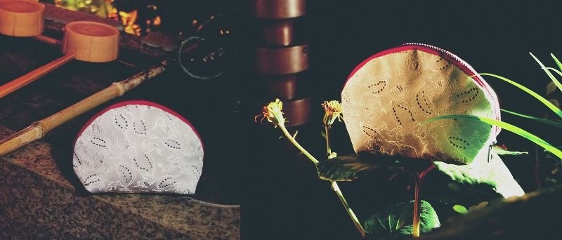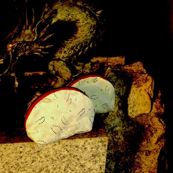 お歯黒べったりの美しい織物生地を使用した化粧小物。