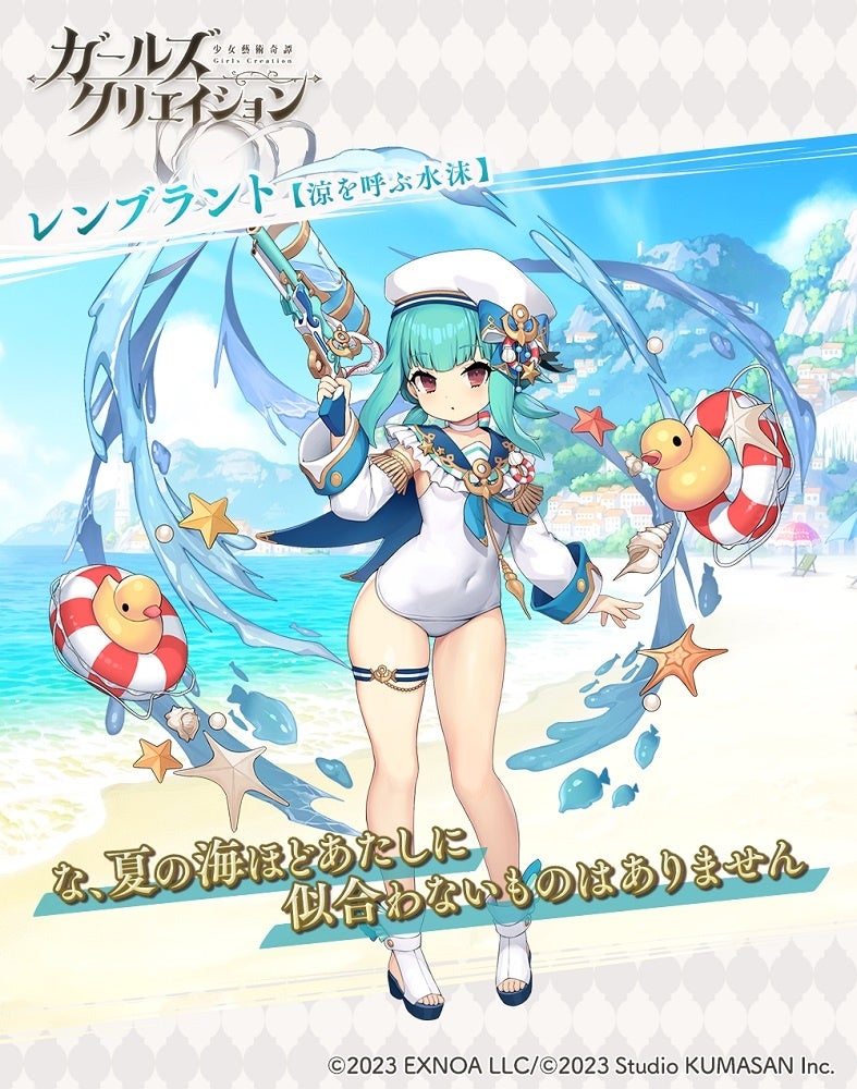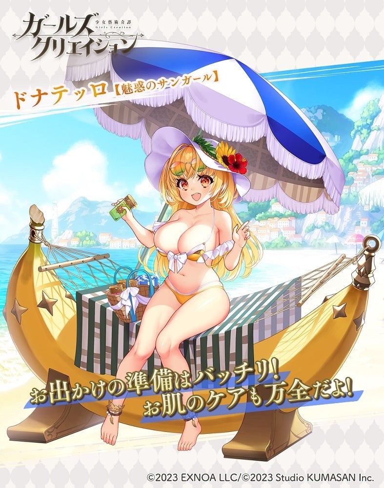 合同会社EXNOA(本社:東京都港区、CEO:村中 悠介、URL:https://games.dmm.com/ )が運営するDMM GAMESにおいて、「クリエイティブチーム くまさん」第4弾作品となる『ガールズクリエイション -少女藝術綺譚-』(以下、『ガールズクリエイション』)にて、イベント「夏に焦がれる砂跡」の開催と、水着姿のドナテッロ★5スタイル【魅惑のサンガール】とレンブラント★5スタイル【涼を呼ぶ水沫】の登場をお知らせいたします。