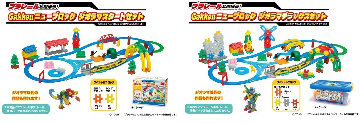 本企画は、両社の ”子どもたちにより自由な発想力が養える機会を提供したい”という共通の想いから、長年愛され続ける人気ブランドの知育玩具「Gakkenニューブロック」と鉄道玩具「プラレール」を一緒に組み合わせて遊ぶことができるコラボレーションが実現したものです。