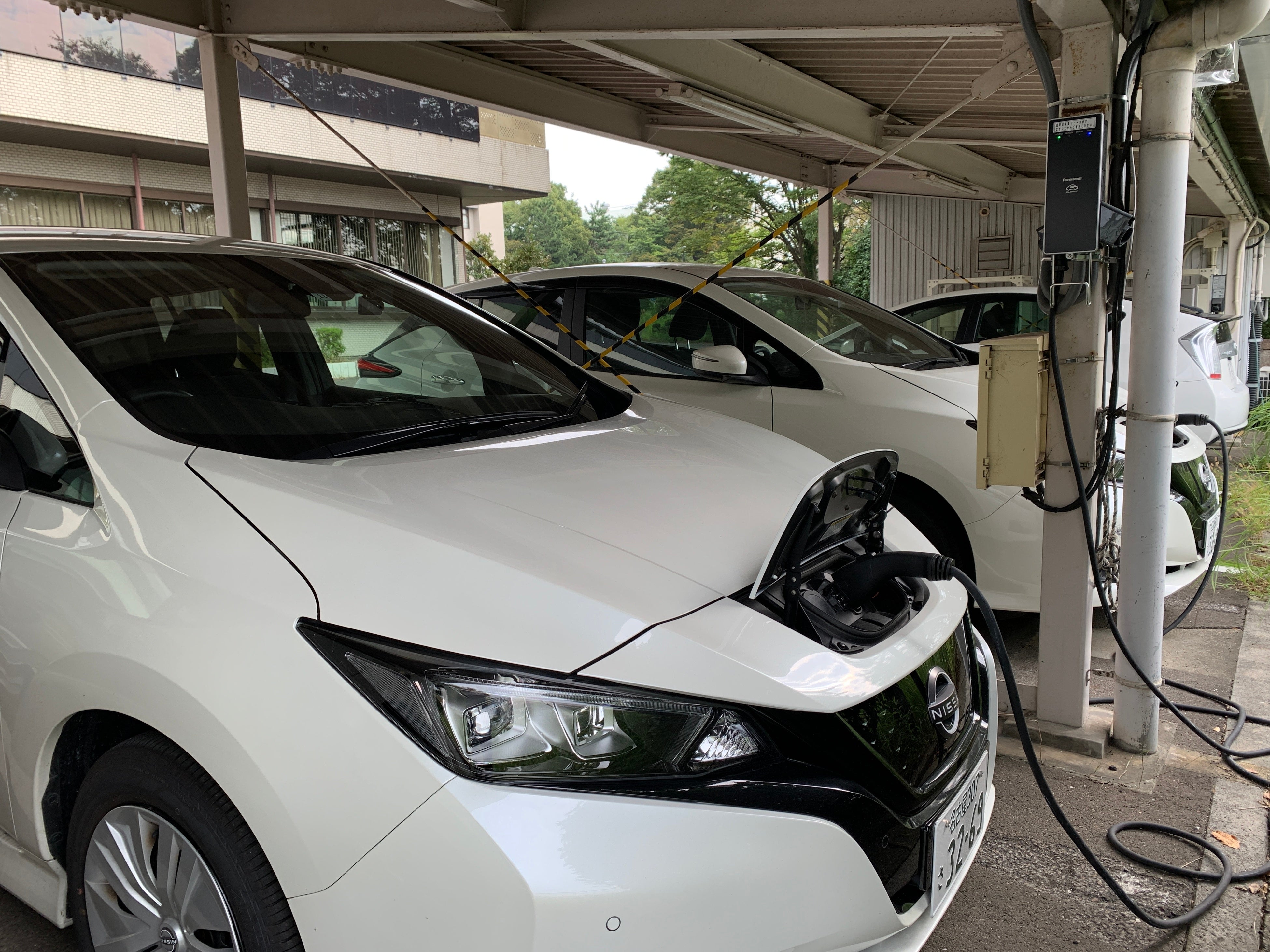 【使用設備】中部電力の技術開発本部に設置されている充電設備(普通充電器2基)とEV2台を使用