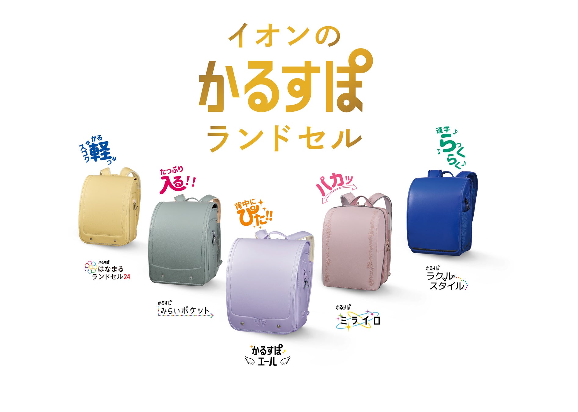 イオンは2001年に業界初となる「24色ランドセル」を発売し、色の選択肢を広げました。現在は色とデザインの選択肢だけではなく、機能面も進化しています。従来のランドセルにとらわれることなく、出し入れ簡単な次世代ランドセル「ミライロ」やリュックタイプ「ラクルスタイル」など、新しい ランドセルを提案し続けています。