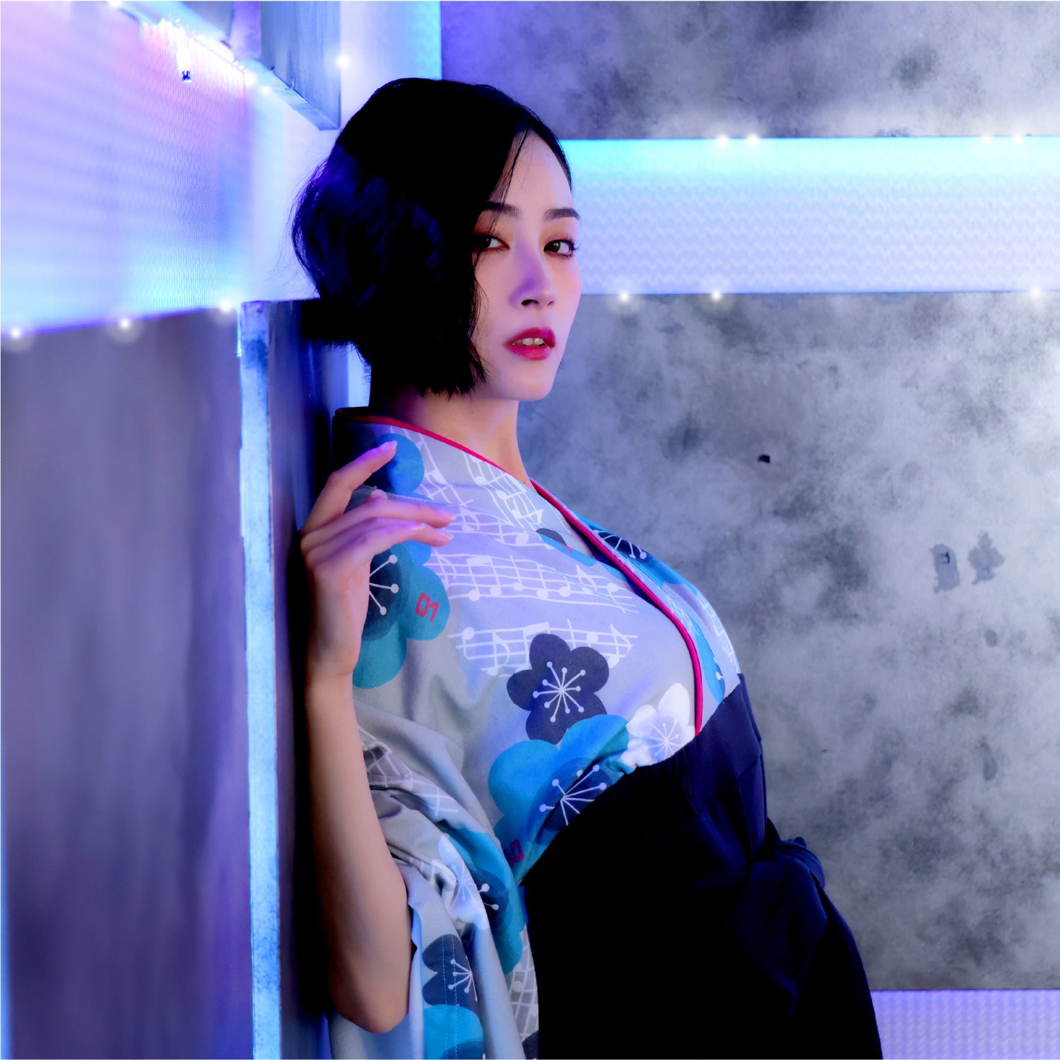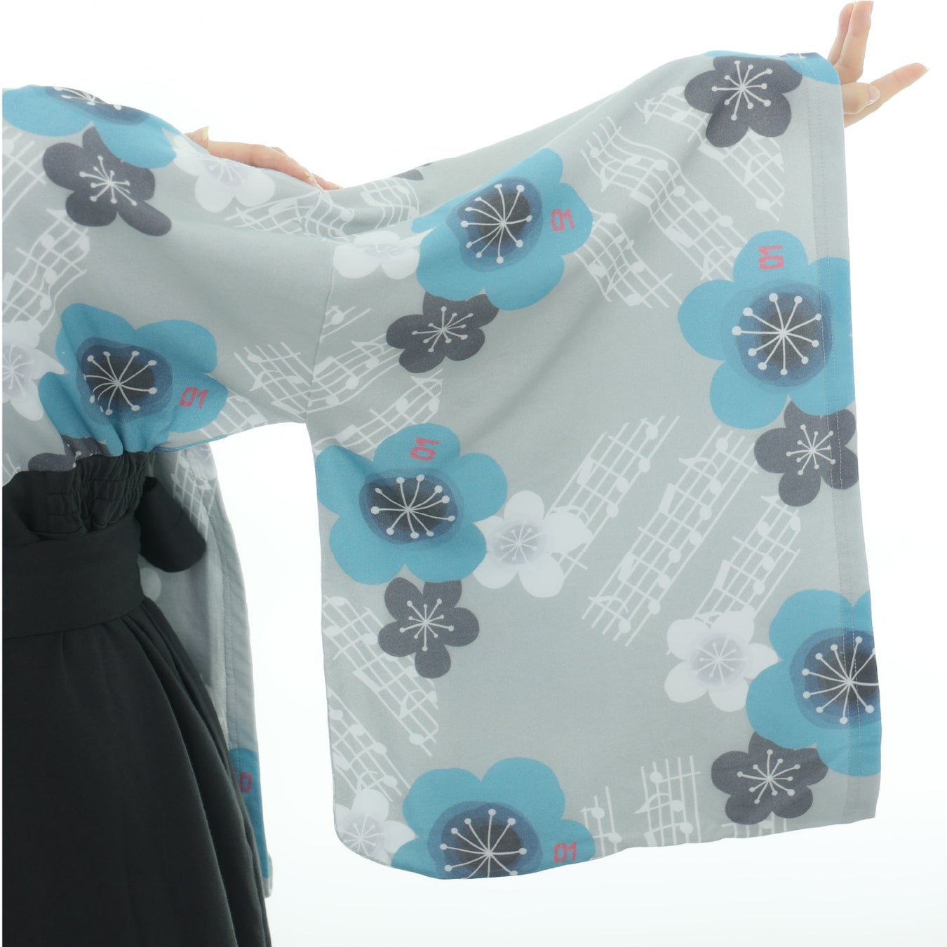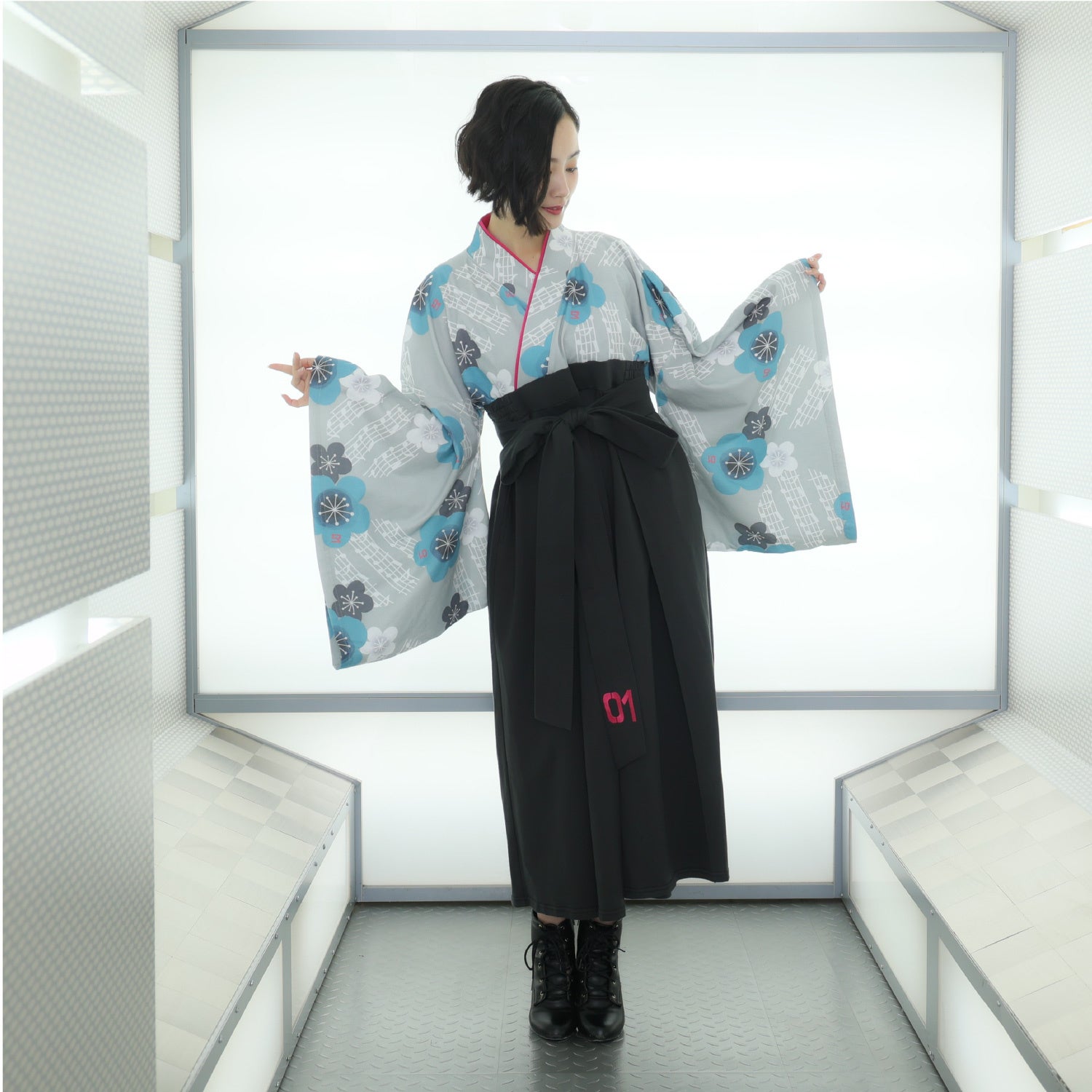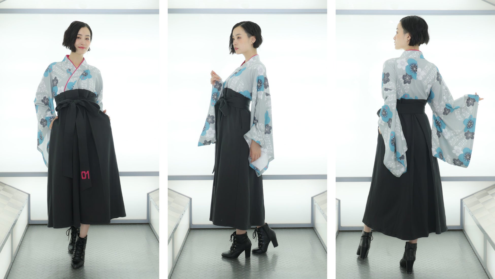 和の文化である桜とバーチャルシンガーの初音ミクから着想を得た音符がデザインされた袴です。