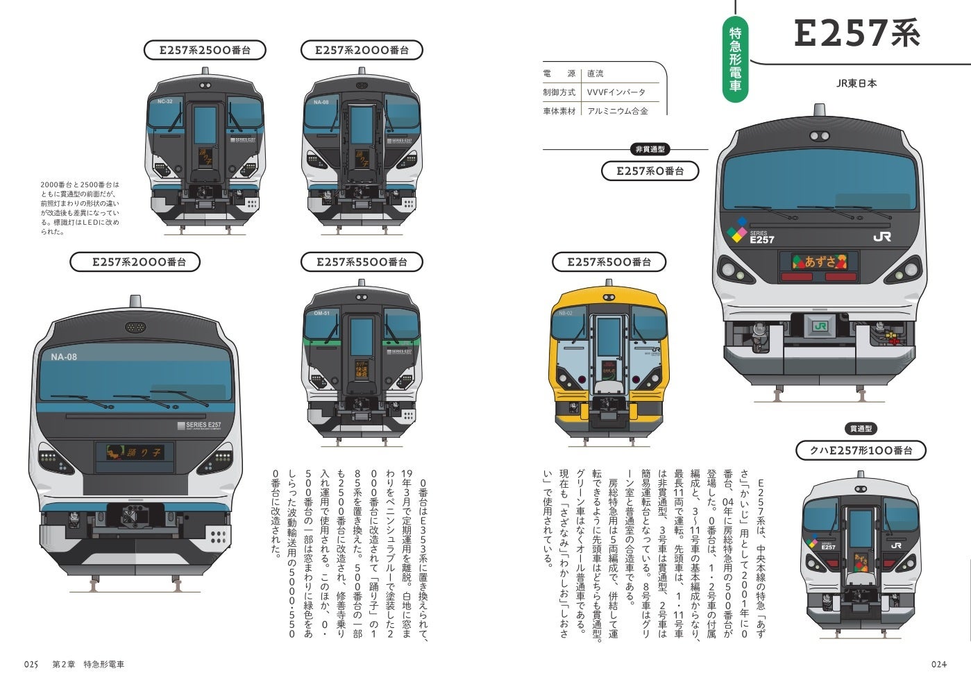 シリーズ第1巻となる「電車の顔図鑑」のテーマは「JR線を走る鉄道車両」。JRの現役車両を安定感のある鉄道模型スケールで描いています。「電車の顔図鑑」の初版第1刷が発売された2017年からわずか5年の間に、多くの国鉄型車両が形式消滅し、JR各社から新しい車両が登場しました。そこで、これらの加除・配置の変更などを行い、情報をアップデートして「改訂新版」としました。また、シリーズが第5巻まで増えたことから、書名を「電車の顔図鑑1」とナンバリングしました。