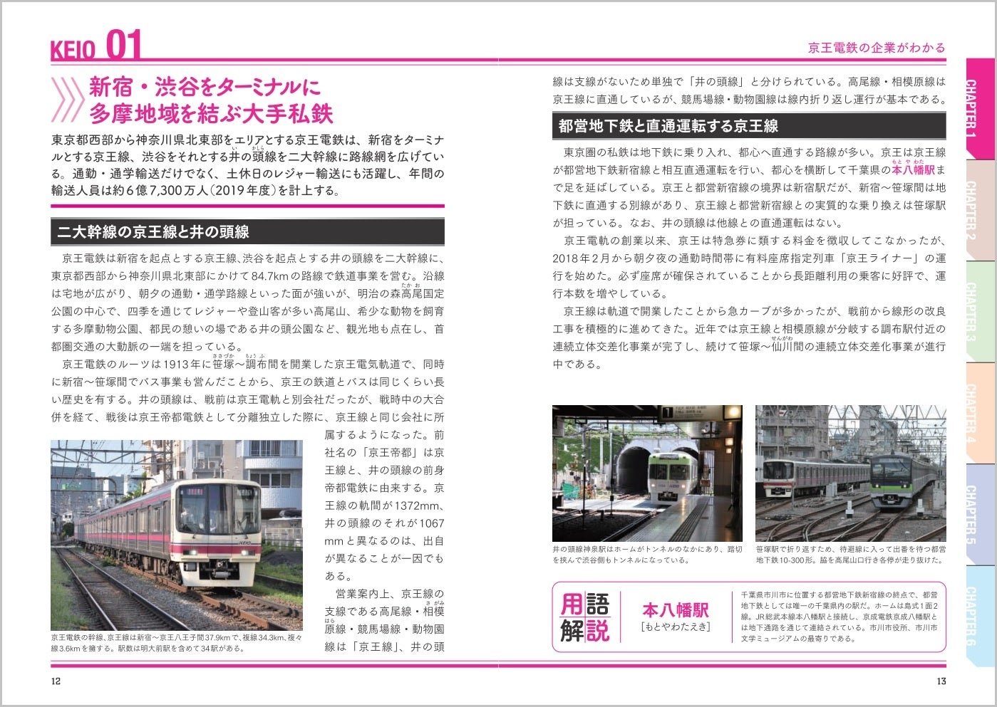 本書は、企業、路線、駅、車両、歴史、魅力の6章で構成。京王電鉄を多角的に取り上げ、知っておきたい内容を抽出し、分かりやすく解説しています。