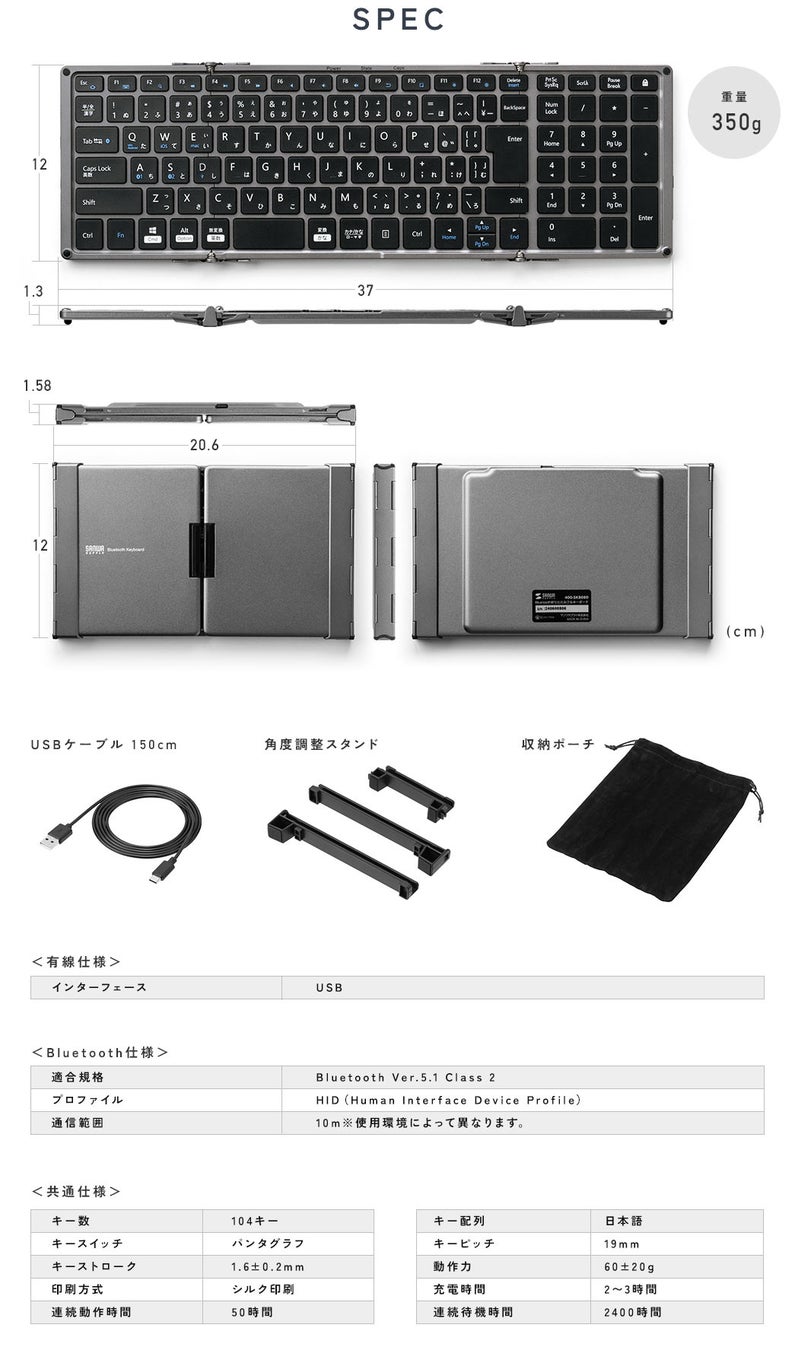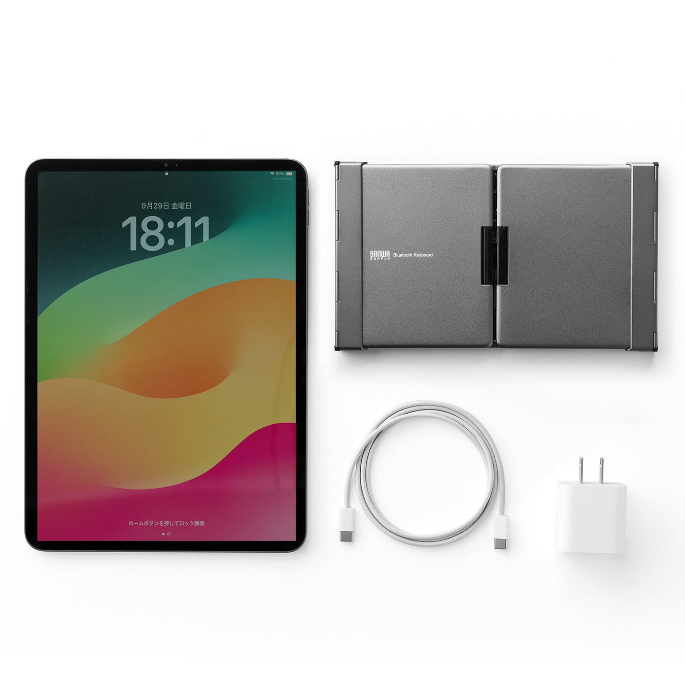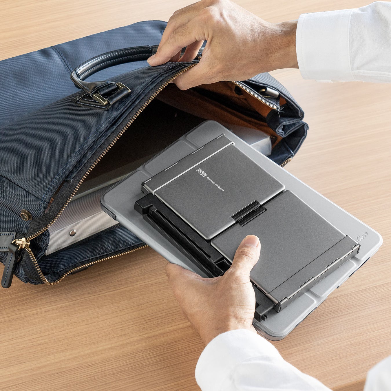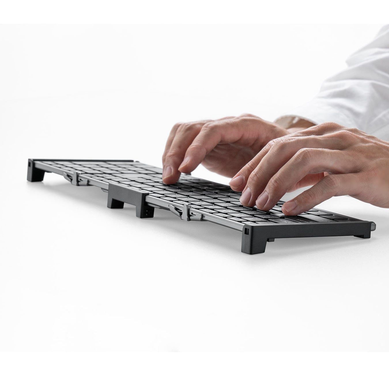 三つに折りたたむことで、テンキー付きのフルキーボードをコンパクトに収納できます。持ち運びに便利で外出先でも快適な作業が可能です。