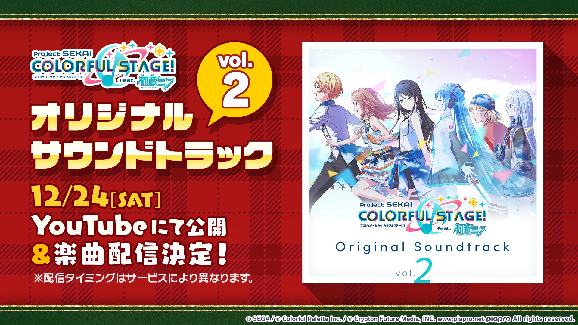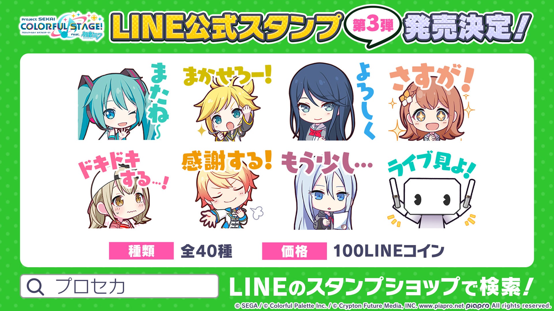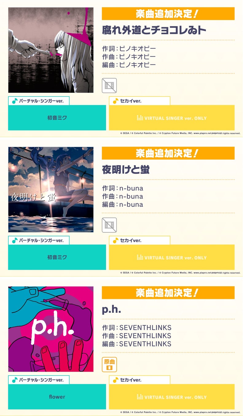 著作権表記:© SEGA / © Colorful Palette Inc. / © Crypton Future Media, INC. www.piapro.net All rights reserved. / ©Avogado6