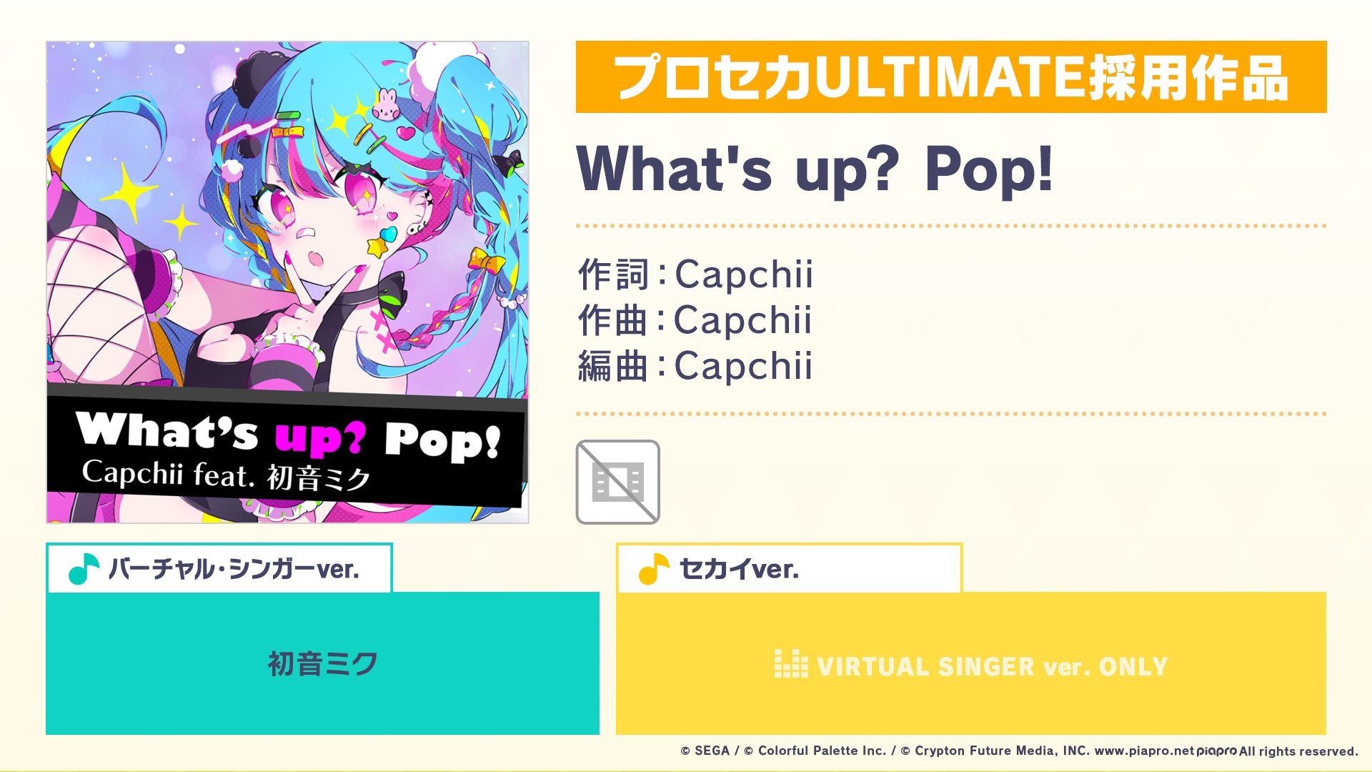 ■リズムゲーム楽曲に「プロセカULTIMATE」採用作品「What's up? Pop!」追加!