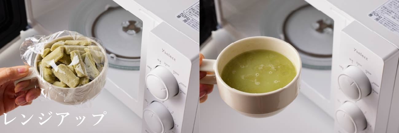 ピカールのスープ商品は、小さなブロック状になっているため、お好みの分量をマグカップに入れて電子レンジで温めるだけで、一人前から本格的な味わいのスープを楽しめます。調味料を加えていないため、素材の風味をそのまま味わうことができ、お好みで塩・コショウや乳製品を加えてアレンジするのもおすすめです。また、フランスで露地栽培された野菜を原料に使用しており、野菜本来の旨味を生かした美味しさがピカールのスープ商品のこだわりです。3月は、まだ肌寒さが残る季節。温かいスープで、心も体も癒されるひとときをお過ごしください。