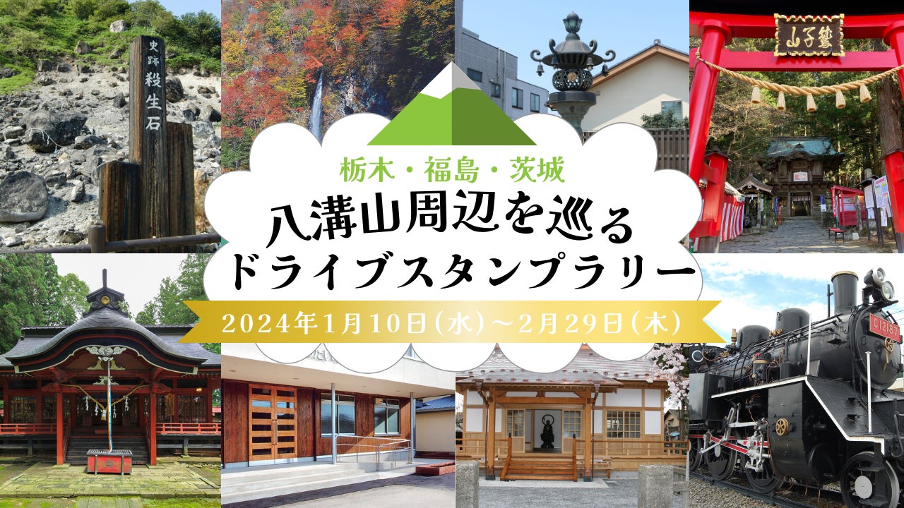 栃木・福島・茨城3県にまたがるようにそびえる八溝山。標高1,022メートルを誇り、その名は八方に深く谷が刻まれているところに由来します。その八溝山を囲む8自治体(=八溝山周辺地域定住自立圏)の観光スポットを巡るドライブスタンプラリーを開催します。スタンプを集めると、その個数に応じて宿泊券や特産品詰合せが当たるプレゼントに応募ができます。
