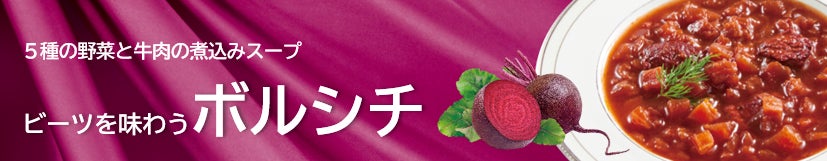 この度リニューアル発売する商品は、国産のビーツをたっぷり使用した、視覚的にも味覚的にもより本場のボルシチを追求した商品です。牛肉には、赤身のおいしいタスマニアビーフを使用しました。こだわりのボルシチをぜひお楽しみください。