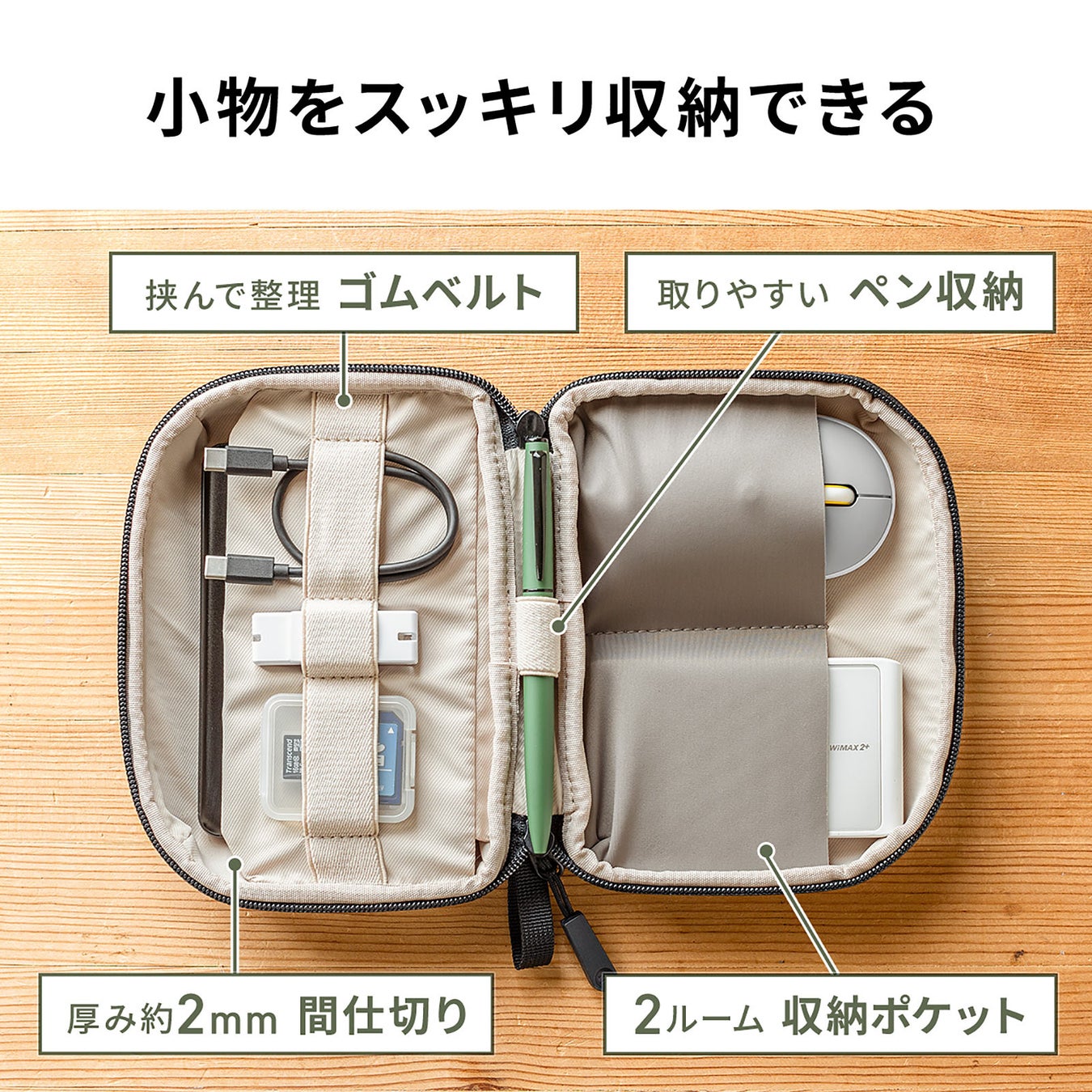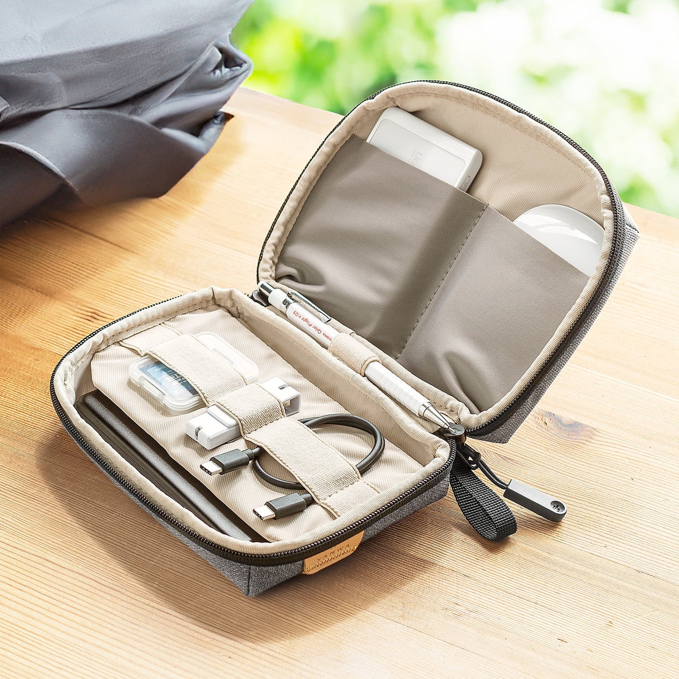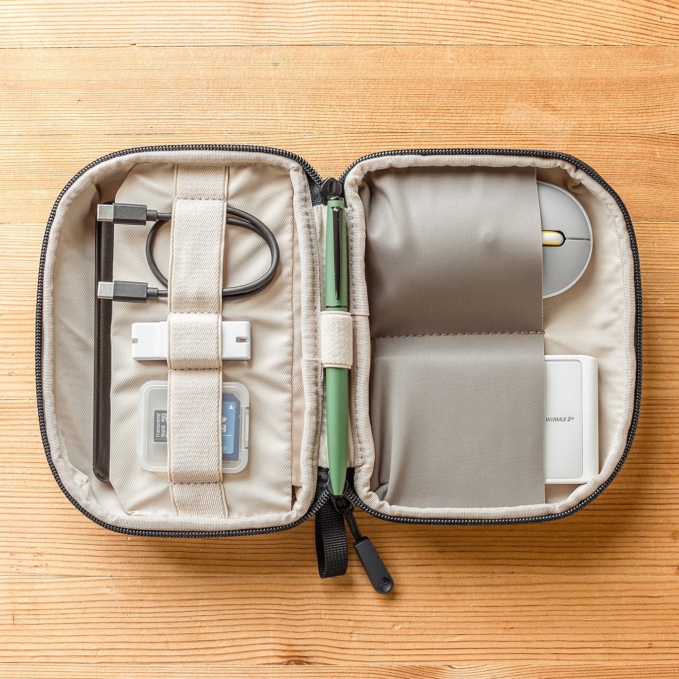 収納物を見つけやすく取り出しやすい撥水ガジェットポーチ