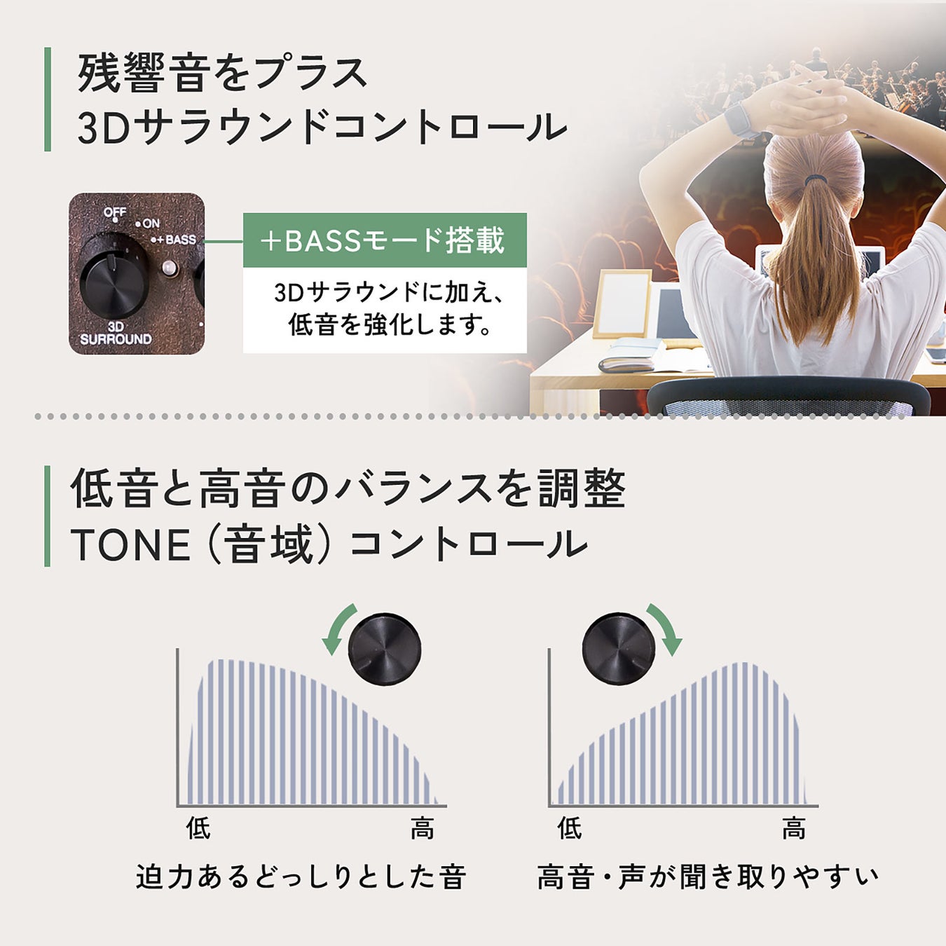 ・木製で高音質&3Dサラウンド