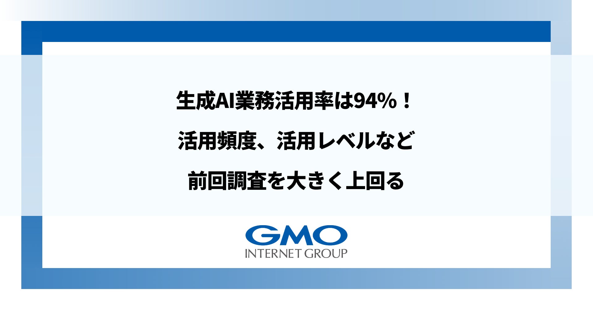 GMOインターネットグループ、生成AIの業務活用率は94%!活用頻度、活用レベルなど前回調査を大きく上回る結果に
