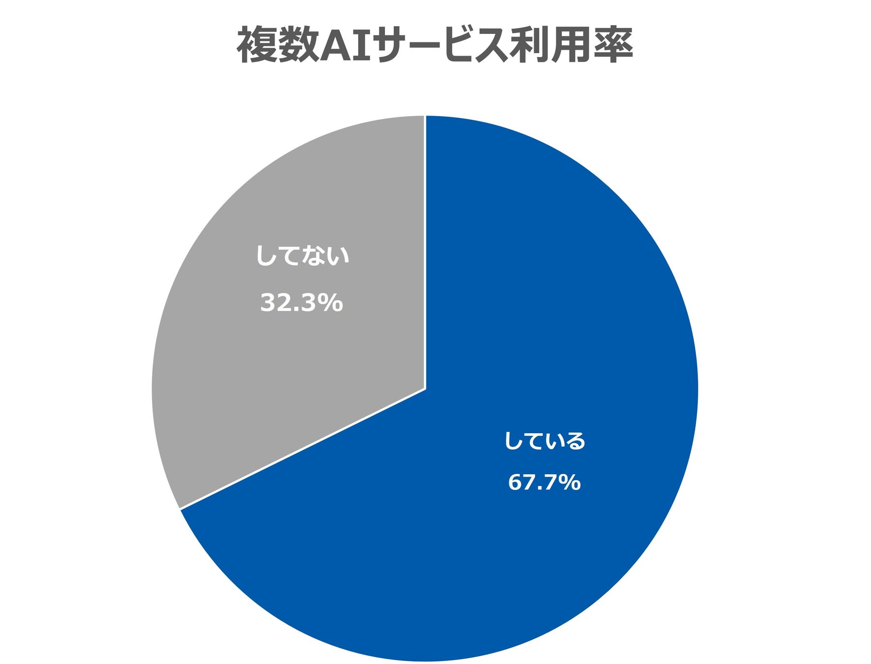 ・複数AIツールの利用率は、2025年3月時点で53.4%であったのに対し67.7%と、14.3ポイント上回る結果に。今年度より複数AIツールのさらなる活用を進めており、その成果が出始めていると予想されます。