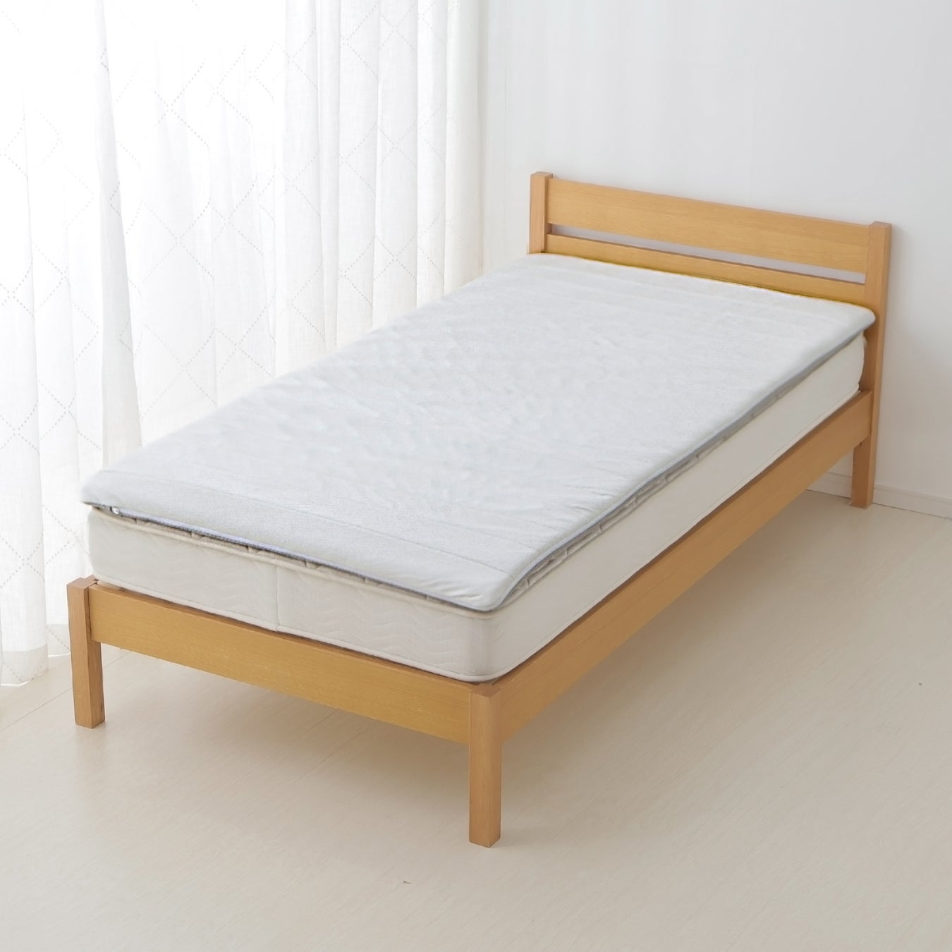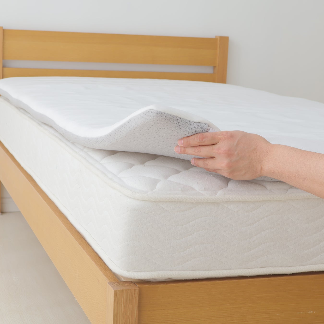 トッパーは弾力性があり、寝返りをサポートする寝心地改善寝具です。通気性が良い中材を使用し、睡眠時のムレ感を軽減する構造です。表裏使えて、定期的に裏返して使用することで長く使えます。中材は水洗いが可能です。