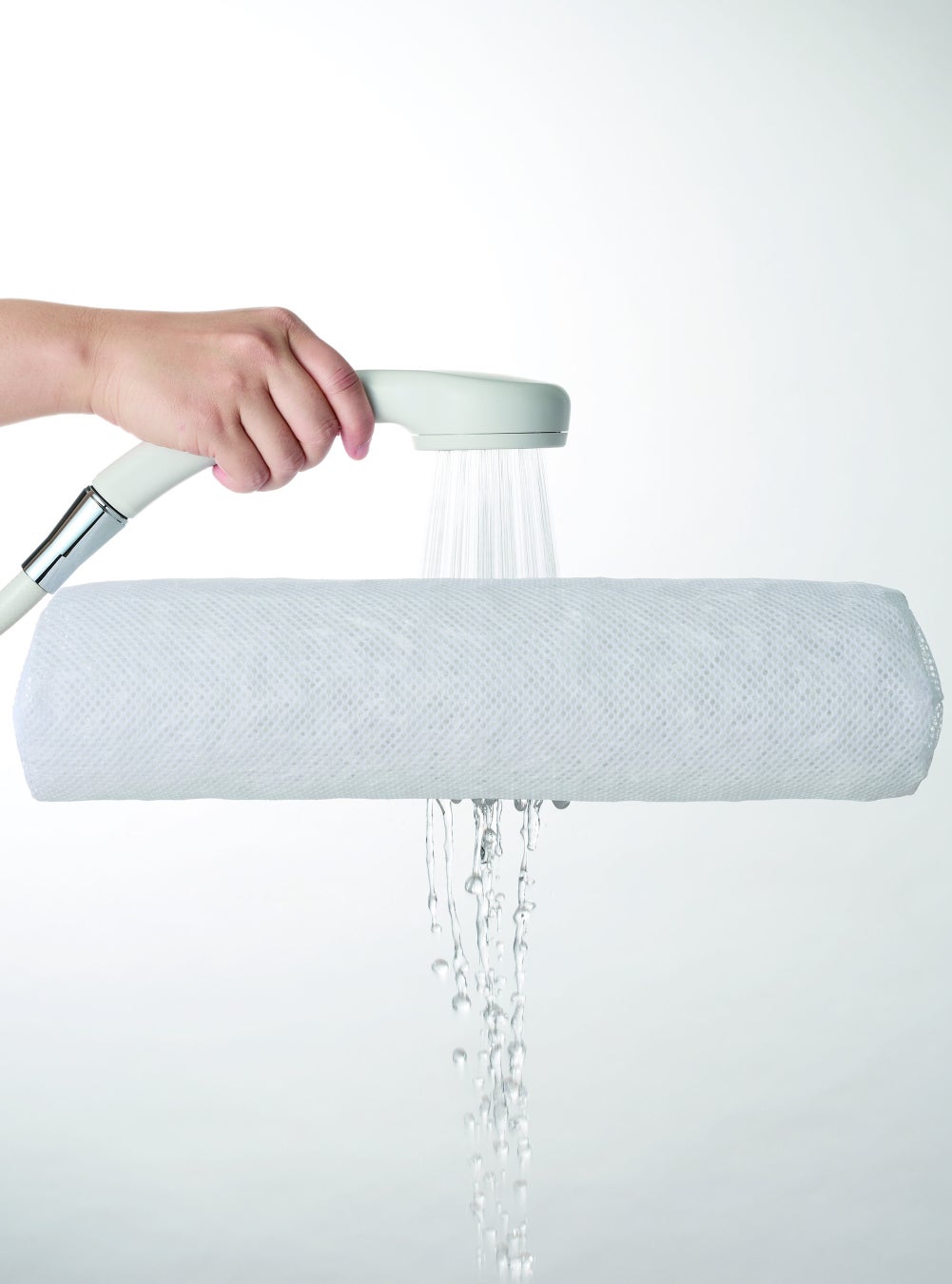 ・通気性が良い立体網状構造の中芯を使用し、頭部分と足部分は“かため”、腰部分を“よりかため”にすることで、腰をしっかりと支えます。取り外して水洗いが可能です。