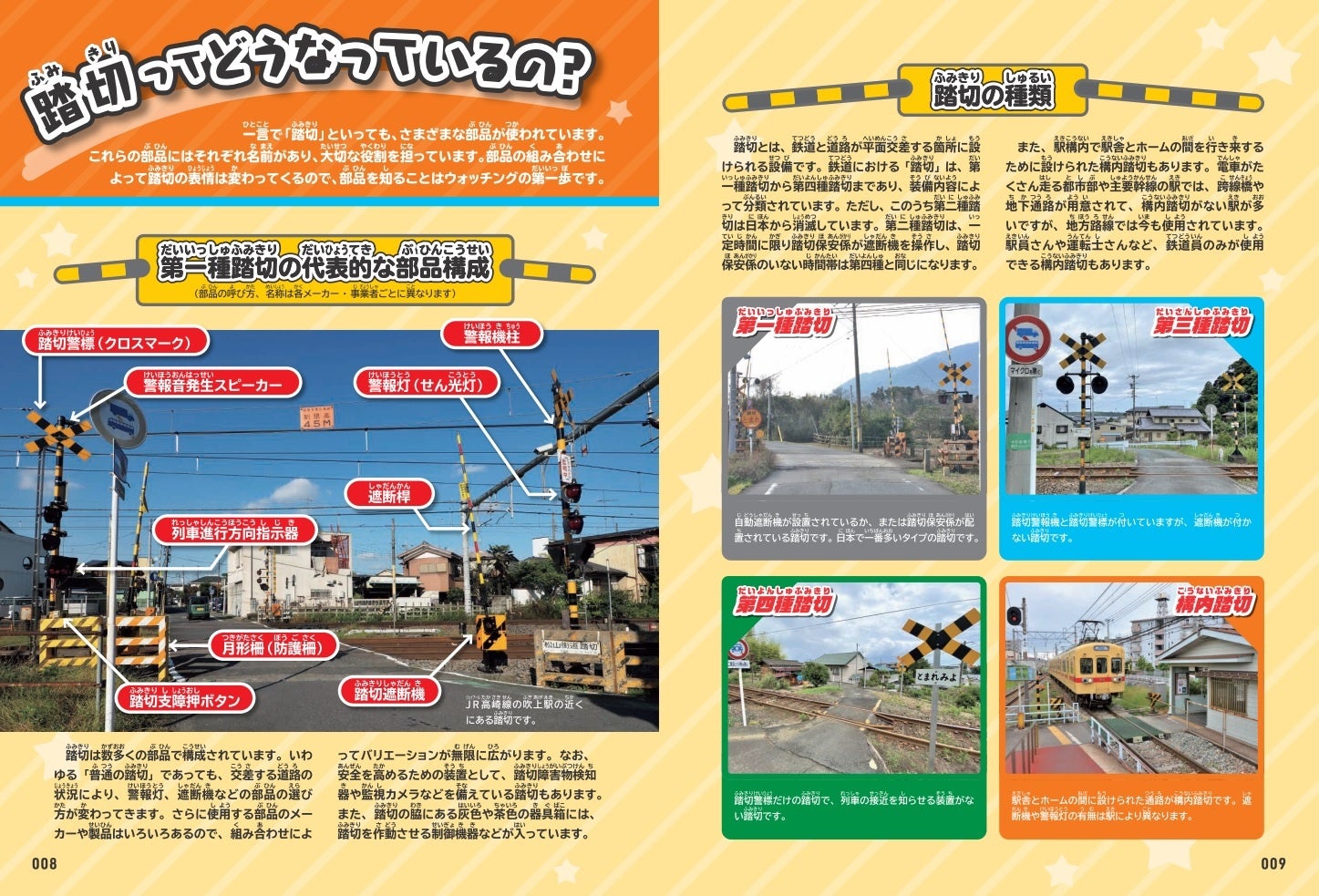 第一特集は「みんな大好き! 踏切のヒミツ」。踏切を構成する部品の名称や種類、全国のおもしろ踏切を紹介するほか、警報灯などの灯具類や踏切を作動させる機器などを開発・製造している東邦電機工業を取材し、さまざまな踏切をじっくりと紹介します。