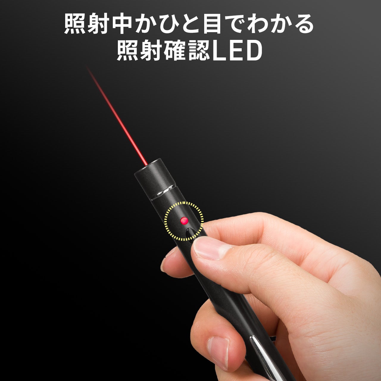 ●照射中は、手元のLEDが点灯するので、暗い場所でも照射しているかどうか一目でわかります。
