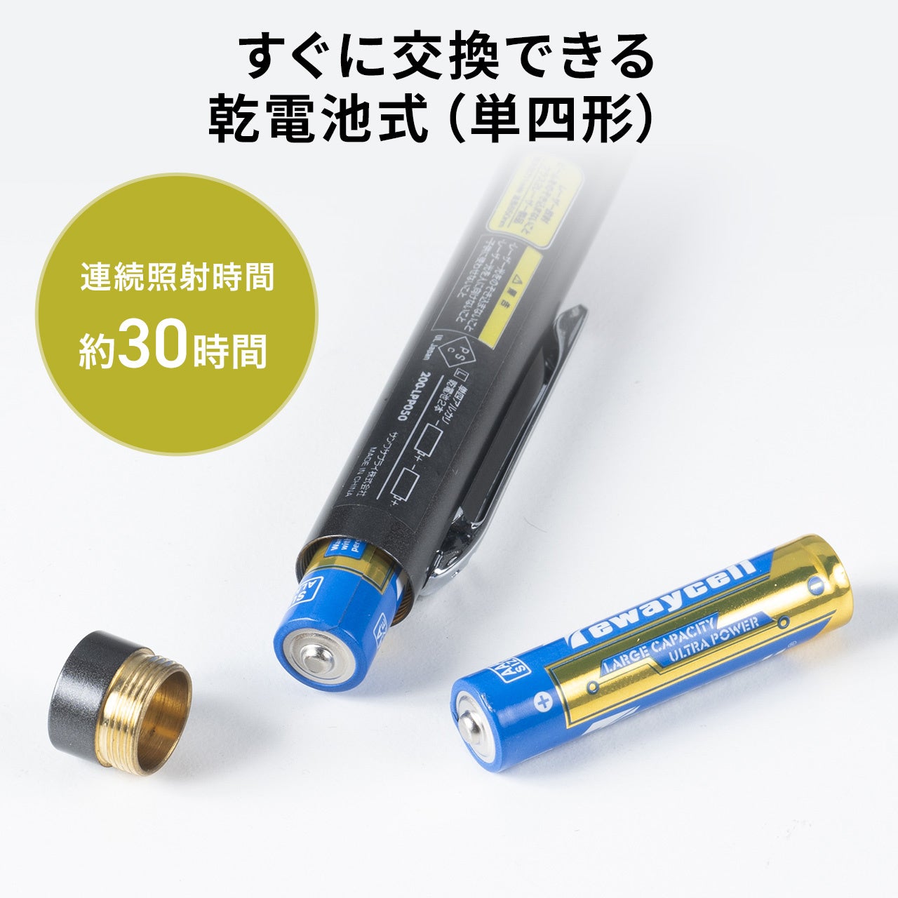 ●すぐに交換できる単4電池×2本で動作する乾電池式です。