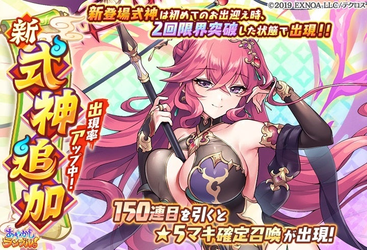 DMM GAMES『あやかしランブル!』にて、新たに期間限定「★5 ナギ」と、恒常式神「★5 マキ」が登場!さらに「真華の契り」の対象式神に「★5 ヤマタノオロチ」が追加!