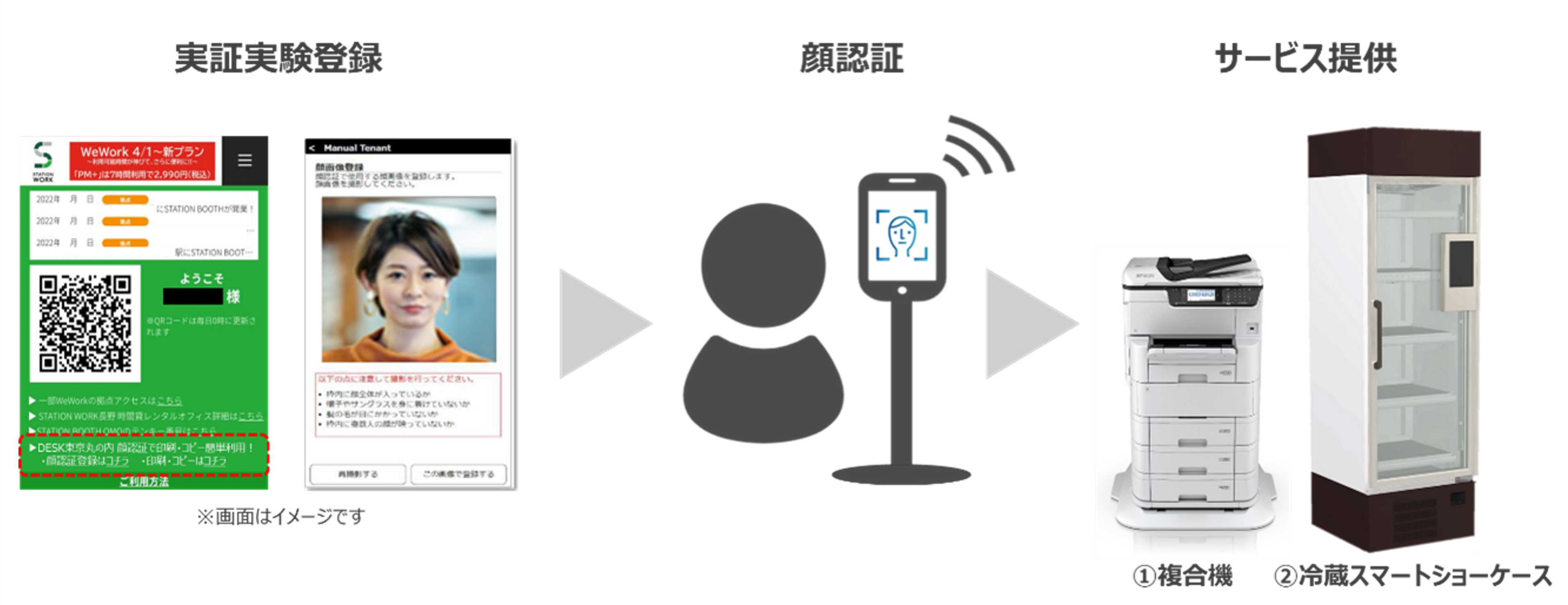 ○JR東日本は、パナソニック コネクト株式会社(本社:東京都中央区、以下「パナソニック コネクト」)、エプソン販売株式会社(本社:東京都新宿区、以下「エプソン販売」)と3社共同で、同施設内において顔認証機能による複合機・冷蔵スマートショーケース利用の実証実験を開始します。
