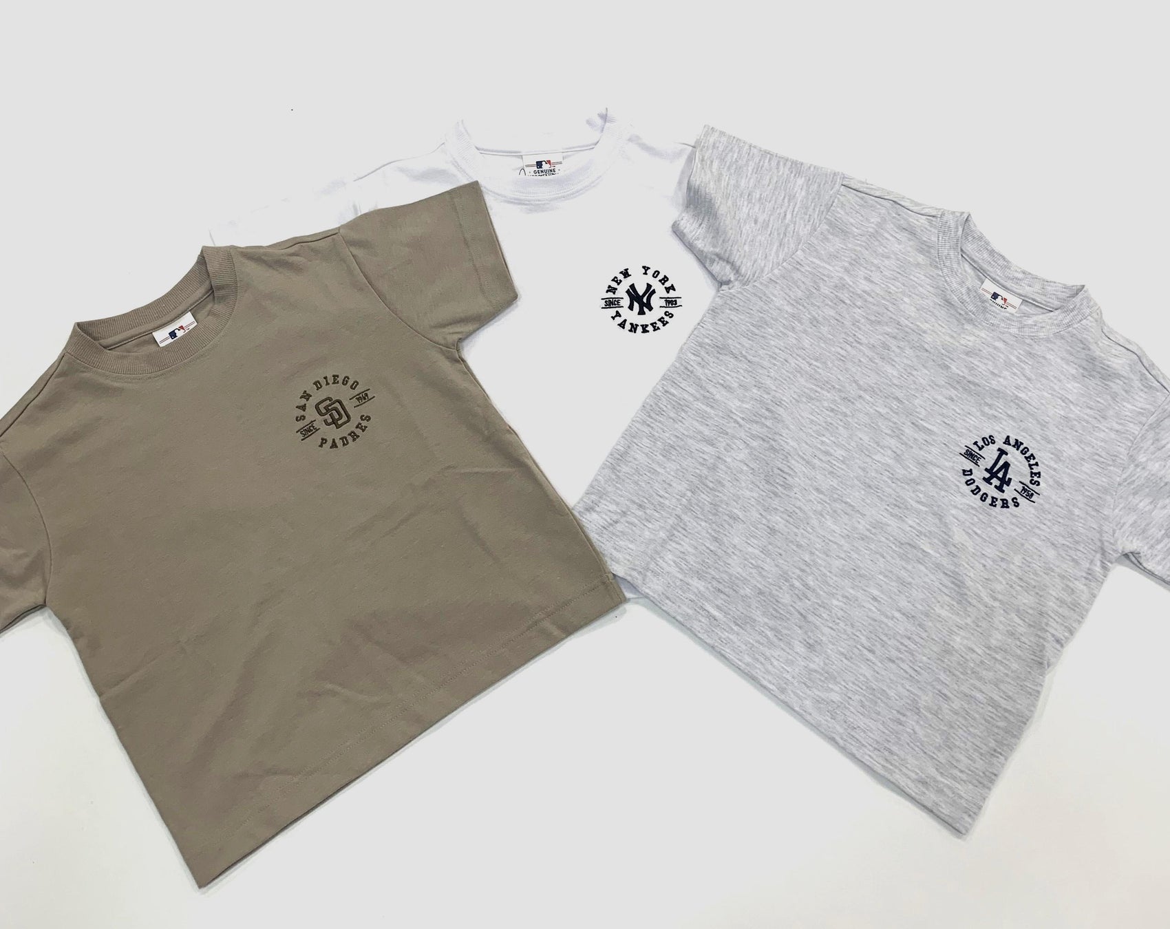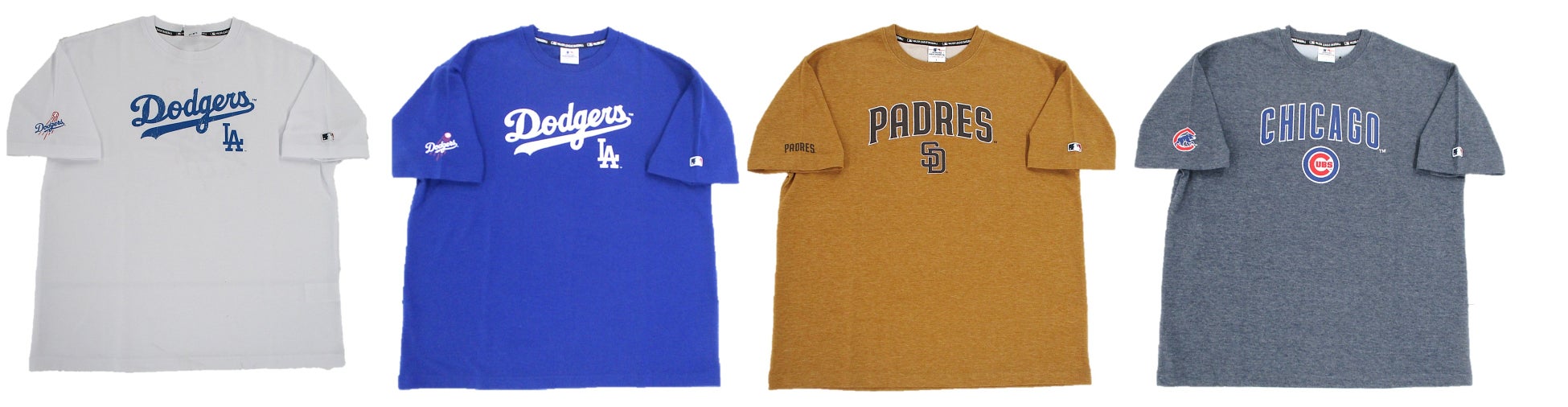 それぞれのチームロゴごとに、揃えたくなるTシャツです。「ロサンゼルスドジャース」「サンディエゴパドレス」「シカゴカブス」の3チーム展開です。